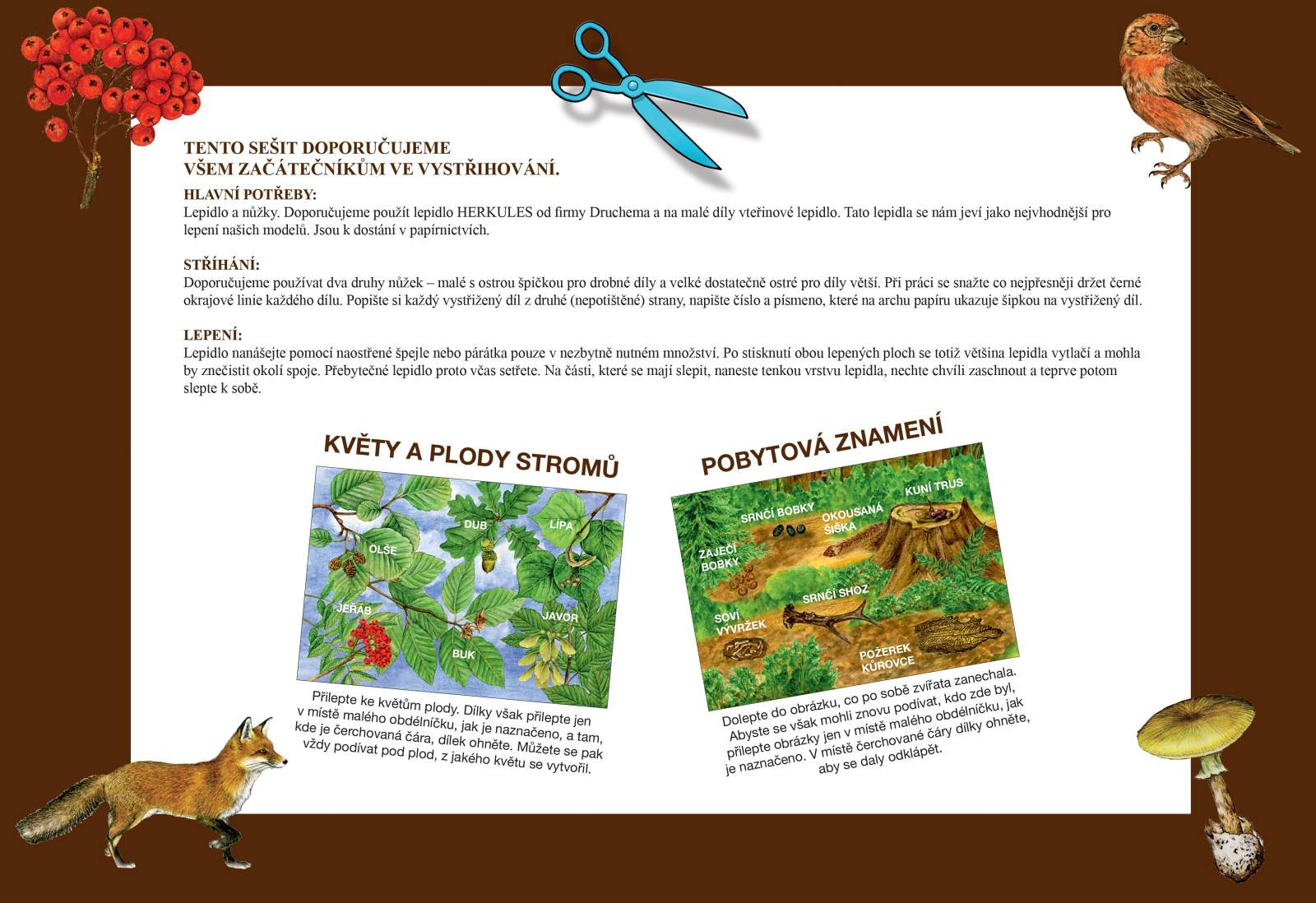 Dolepte do obrázku, čo po sebe zvieratá zanechali. Aby ste sa však mohli znova pozrieť, kto tu bol, prilepte obrázky len v mieste malého obdĺžnika, ako je naznačené. V mieste čerchovanej čiary dieliky ohnite, aby sa dali odklápať.