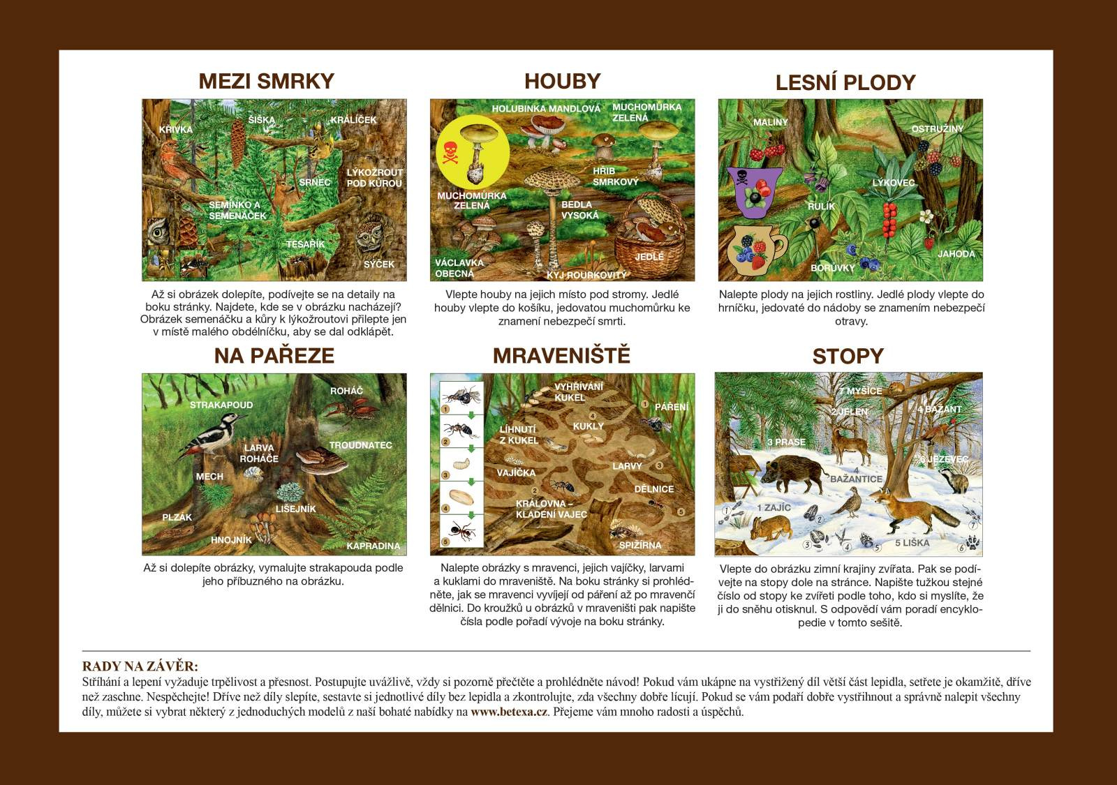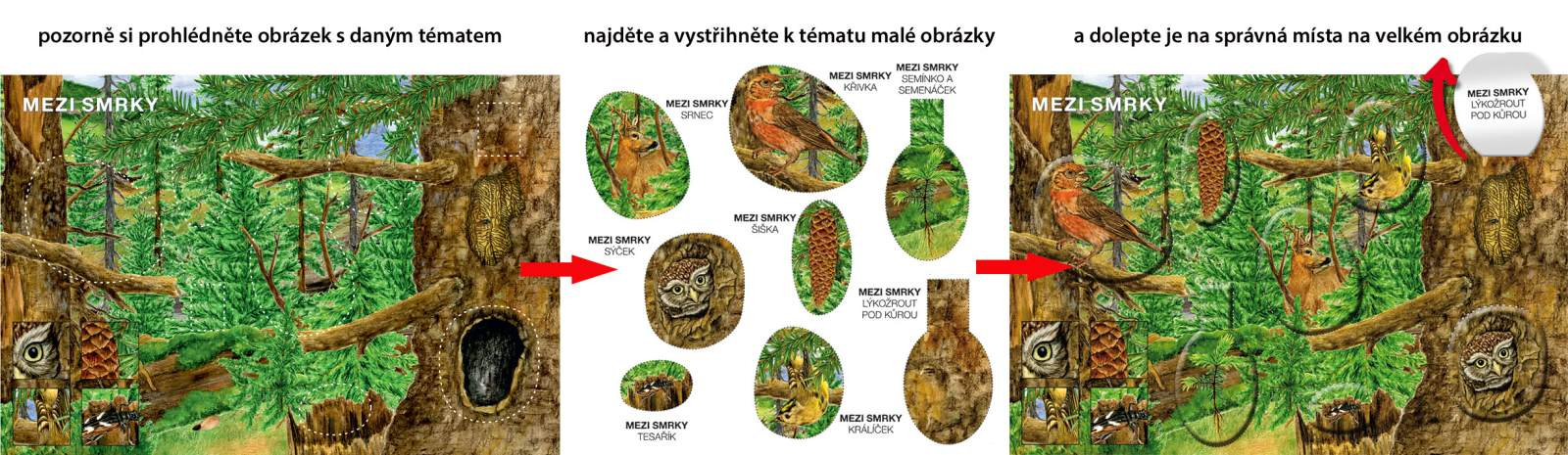 Deti najprv vystrihnú jednotlivé diely skladačky a potom ich nalepujú do natlačených predlôh rôznych prostredí. Orientujú sa podľa farebnej predlohy, ktorá je súčasťou zošita a podľa názvov rastlín a živočíchov, ktoré sú vytlačené na zadnej strane jednotlivých dielov skladačky.