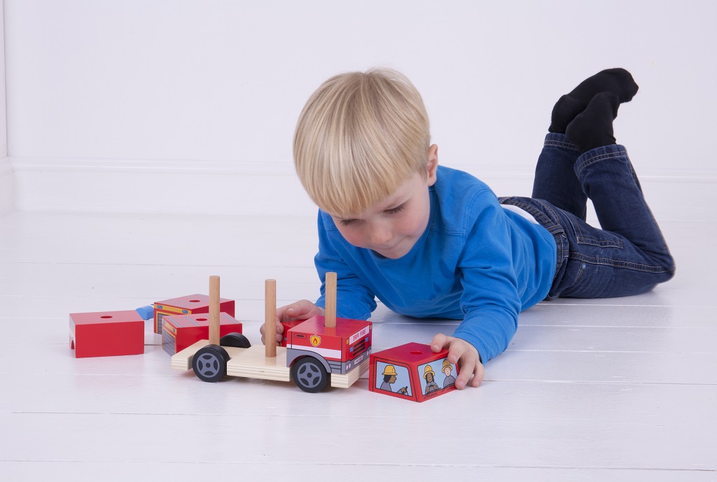 Multifunkčná robustná drevená hračka pre najmenších. Aby sa váš drobček mohol začať hrať s hasičským vozidlom, musí najprv prísť na to, ako správne poskladať na kolíky v podvozku všetky jeho diely. Deti od 1 roku si tak počas hry nielen precvičujú a zdokonaľujú svoju jemnú motoriku, ale zároveň sa učia riešiť jednoduché problémy. Všetko je vyrobené z kvalitného dreva z udržateľných a obnoviteľných zdrojov a hračka vyhovuje súčasným európskym bezpečnostným štandardom.