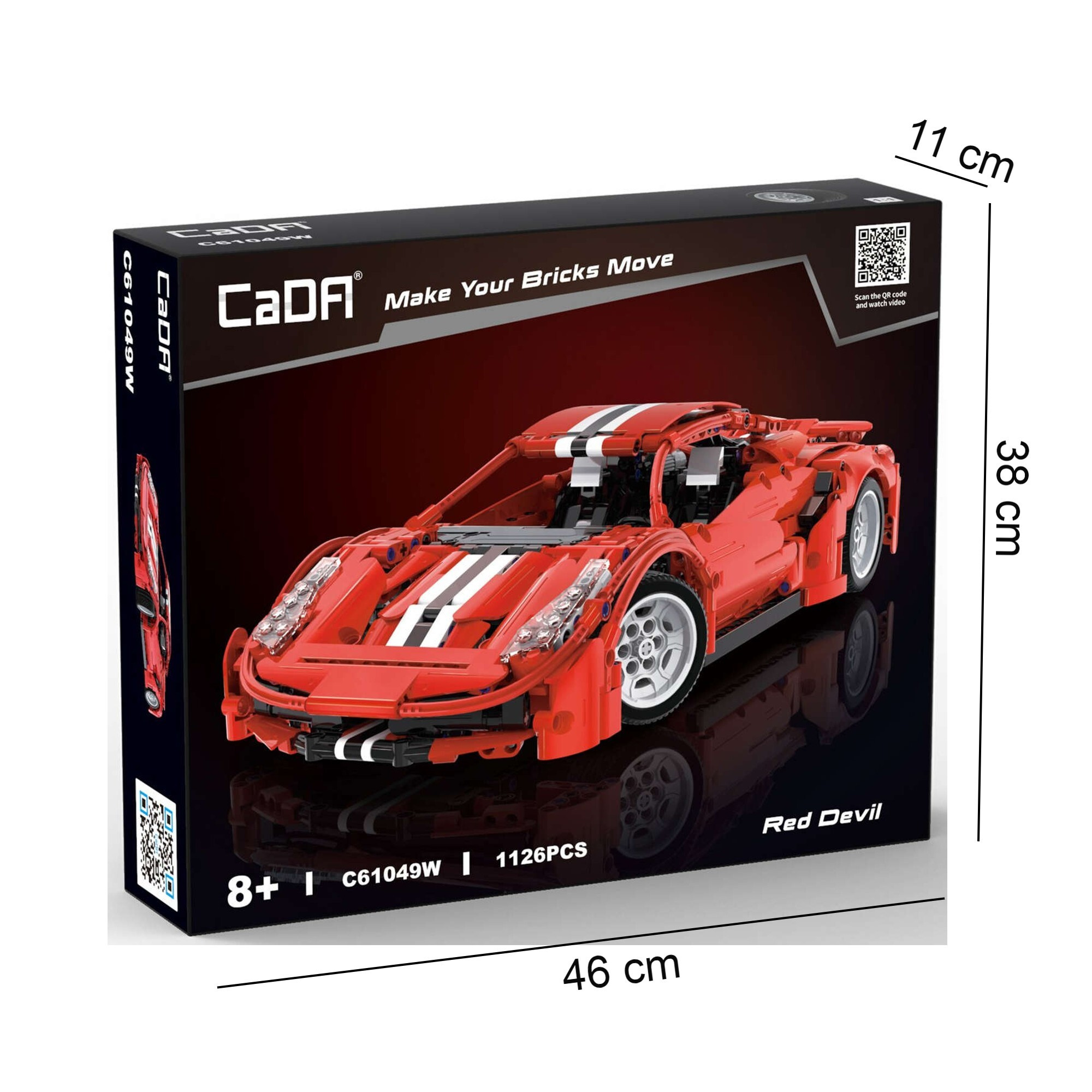 Stavebnica CaDA Red Devil zo série Make Your Bricks Move je určená pre milovníkov stavebníc, ktorí hľadajú výzvy a radi rozvíjajú svoje staviteľské zručnosti. Súprava pozostáva z 1126 dielikov a umožňuje postaviť športové auto Red Devil v mierke 1:12. Stavebnica je kvalitná a zameraná na detaily, čo prináša skvelý zážitok zo stavania a radosť zo stavby.