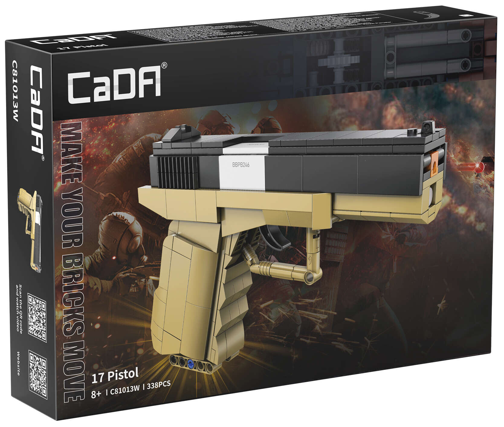 Stavebnica modelu rakúskej pištole Glock 17 je kvalitne spracovaná a jej konštrukcia zodpovedá skutočnému modelu. Zostavená pištoľ meria 19 cm na dĺžku a 13 cm na výšku a má pohyblivé časti, ako je spúšť, nabíjací záver a vyberateľný zásobník. Pištoľ môže vystreliť projektil vyrobený z plastu. Súprava obsahuje 338 stavebných blokov a 5 projektilov a sľubuje veľa zábavy pre fanúšikov vojenskej techniky.