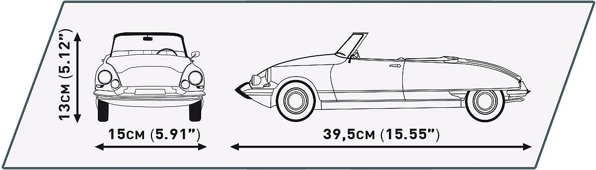 Postavte si model legendárneho francúzskeho Citroënu DS 19 v mierke 1:12. Zostavený model sa skladá z 2467 prvkov a meria 40 cm na dĺžku, 15 cm na šírku a 12,5 cm na výšku. Špeciálne pre design tejto sady boli vyvinuté úplne nové vzory kociek vrátane charakteristického čelného skla. Vozidlo má detailne spracovaný interiér, funkčný volant a otočné kolesá. Vozidlo je tiež vybavené otváracími dverami a kufrom. Pod zdvíhacou kapotou je detailne spracovaný motor.