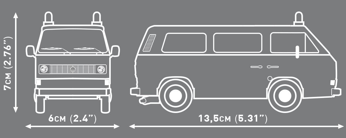 Postavte si ikonický záchranársky model Volkswagen Transporter T3 Feuerwehr v mierke 1:35. Stavebnica obsahuje 238 kvalitných kociek a po zostavení meria model 13,5 cm na dĺžku, 6 cm na šírku a 7 cm na výšku. Súčasťou balenia je figúrka hasiča s doplnkami, roztomilá figúrka mačky a detailná dioráma s horiacim domčekom, hydrantom, chodníkom a trávnikom, ktorá umožňuje vytvárať realistické záchranárske scény. Model zaujme autentickým hasičským vyhotovením, výstražnými svetlami a realistickým značením typickým pre vozidlá nemeckej hasičskej služby. Všetky prvky sú doplnené kvalitnými potlačami priamo na kockách, bez použitia nálepiek.