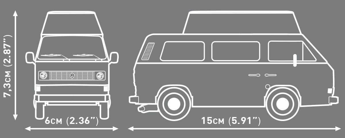 Volkswagen T3 bol posledným Transporterom s klasickou hranatou karosériou a stal sa symbolom slobodného cestovania a dobrodružného životného štýlu. V obytných verziách, najmä Westfalia, slúžil ako skutočný „dom na kolesách“ vybavený lôžkom, kuchynkou, úložnými priestormi a tepelnou izoláciou. Vďaka spoľahlivosti, veľkému vnútornému priestoru a odolnej konštrukcii sa stal obľúbeným spoločníkom cestovateľov po celej Európe aj v USA, kde bol známy pod názvom Volkswagen Vanagon. Stavebnica COBI prináša atmosféru týchto ciest do sveta kociek a ponúka model, ktorý poteší deti aj dospelých zberateľov s dušou objaviteľa.
