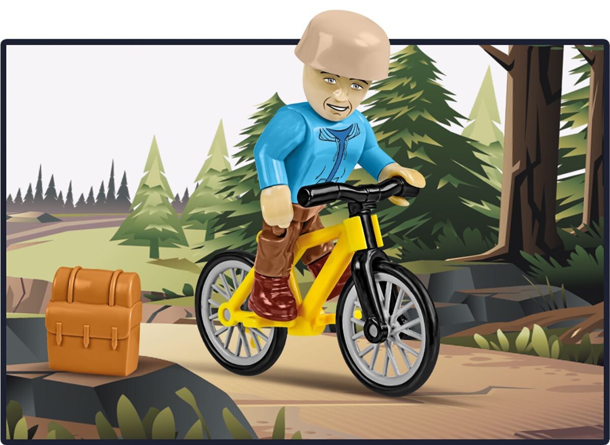 Postavte si dobrodružný model Volkswagen Transporter T3 Camper Van v mierke 1:35, ktorý v sebe spája cestovanie, slobodu a lásku k prírode. Stavebnica obsahuje 232 kvalitných kociek a po zostavení meria samotné vozidlo 15 cm na dĺžku, 6 cm na šírku a 7,3 cm na výšku. Súčasťou balenia je aj figúrka horolezca, figúrka diviaka, bicykel, lezecká skala a bohatá lesná dioráma s piknikovým miestom, stromami, hubami a turistickým značením. Model zaujme autentickou siluetou legendárneho T3, kvalitnými potlačami priamo na kockách bez použitia nálepiek a detailným spracovaním typickým pre obytné verzie tohto kultového vozidla.