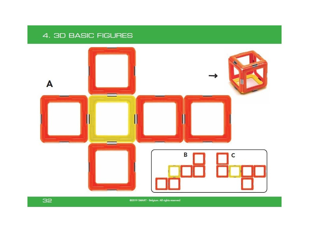 Balenie tiež obsahuje veľký 62-stránkový náučný zošit s úlohami pre deti vrátane ich riešení. Úlohy majú rôzne úrovne náročnosti a deti sa vďaka nim budú hravo učiť – tvary a farby, práci s geometrickými tvarmi v 2D aj 3D perspektíve a zostavovanie modelov podľa predlôh. 7 inšpiratívnych strán nájdete na fotografiách.