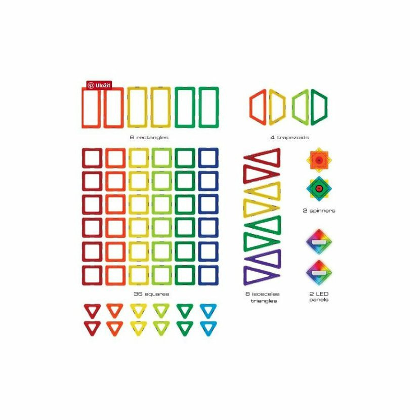 Zábavná magnetická stavebnica GeoSmart pre deti od 5 rokov. Stačí použiť geometrické dieliky a zapojiť predstavivosť pre zostavenie vlastnej vesmírnej stanice alebo inej originálnej konštrukcie. Jednotlivé dieliky sú v žiarivých pestrých farbách a v 5 rôznych tvaroch. Súprava obsahuje aj 2 spinnery. Každý dielik obsahuje magnety, ktoré sú chránené dvojitým bezpečnostným systémom. Všetky sety stavebnice GeoSmart sú kompatibilné.