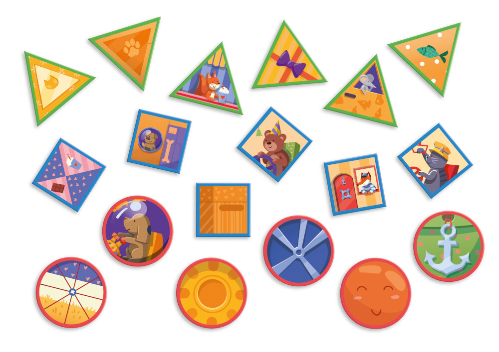 18 žetónov: KRUHY, TROJUHOLNÍKY a ŠTVORCE
