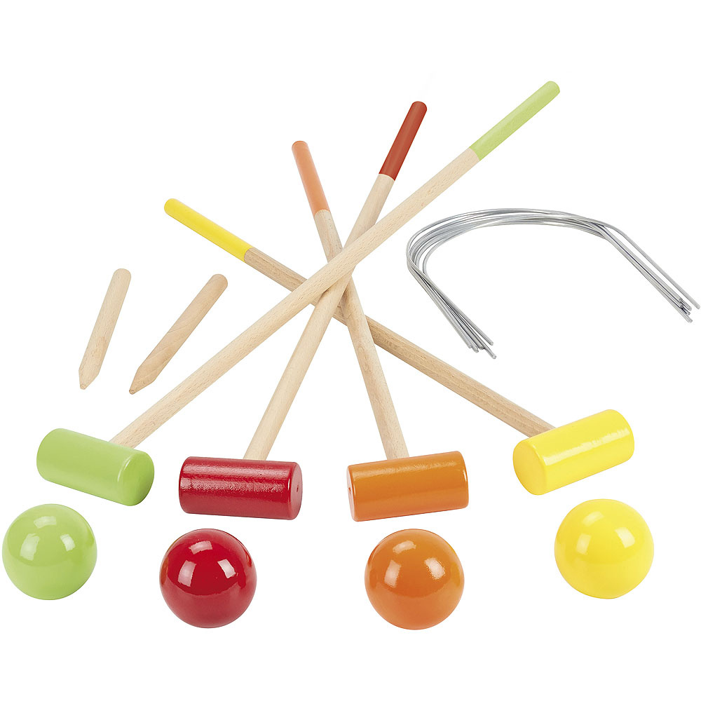 - 4 paličky, 4 míčky, 6 branek a 2 kolíky