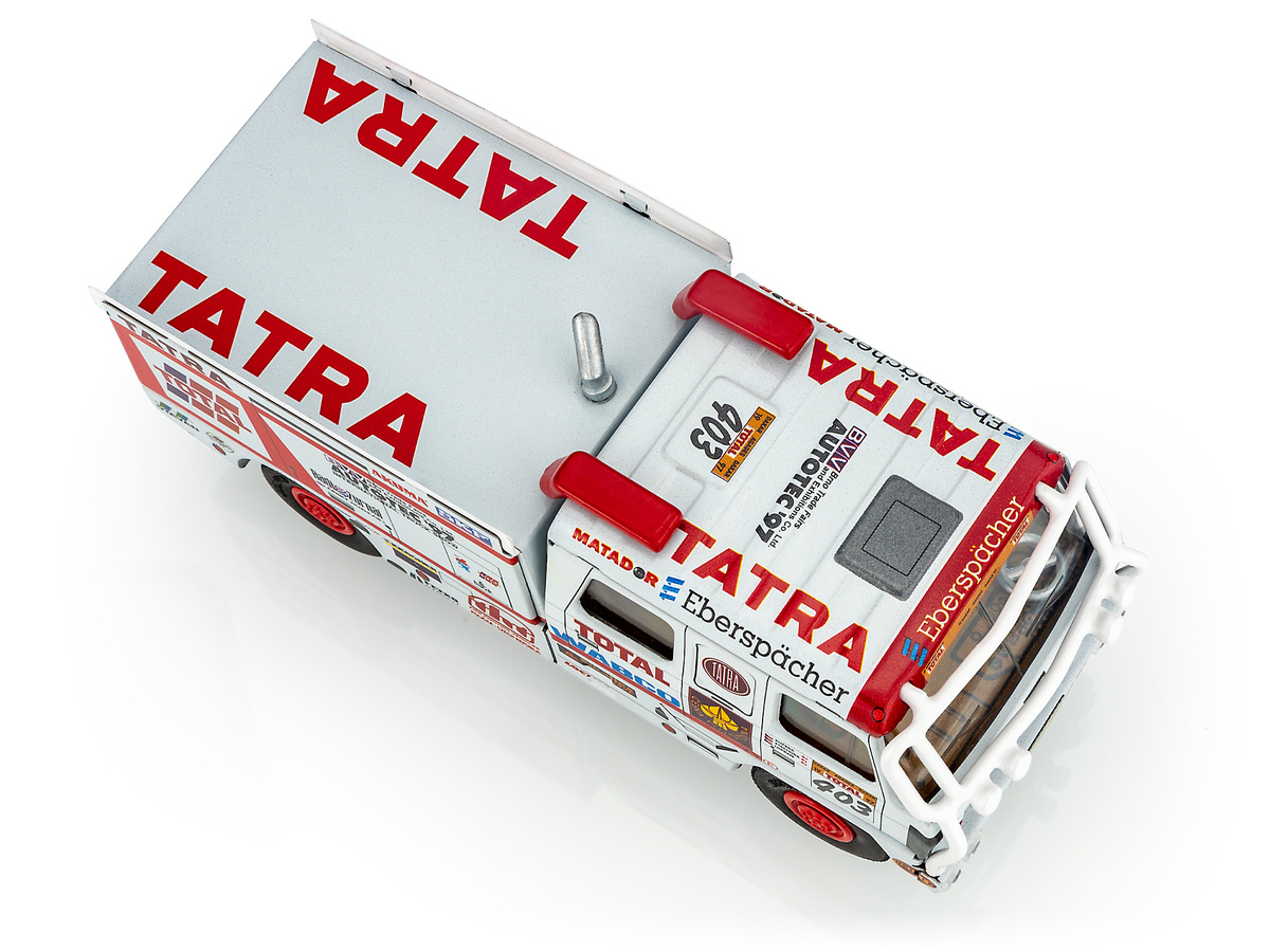 Model Tatry v měřítku 1:43 z potištěného plechu.