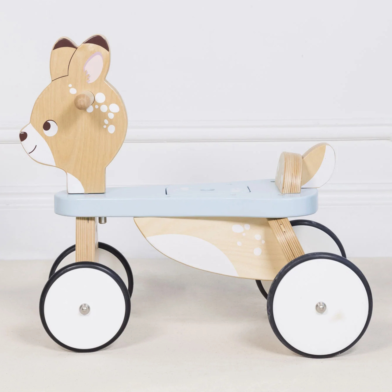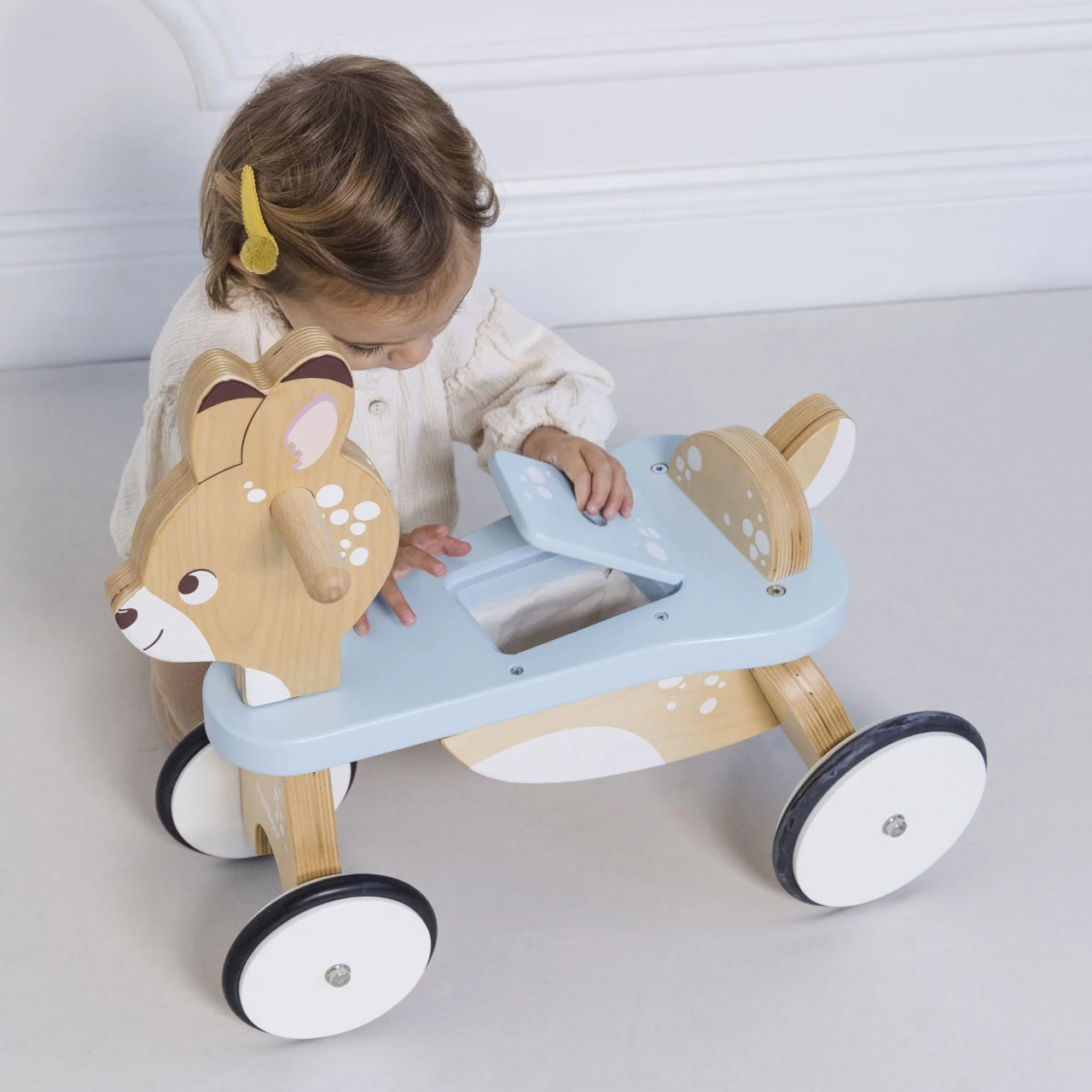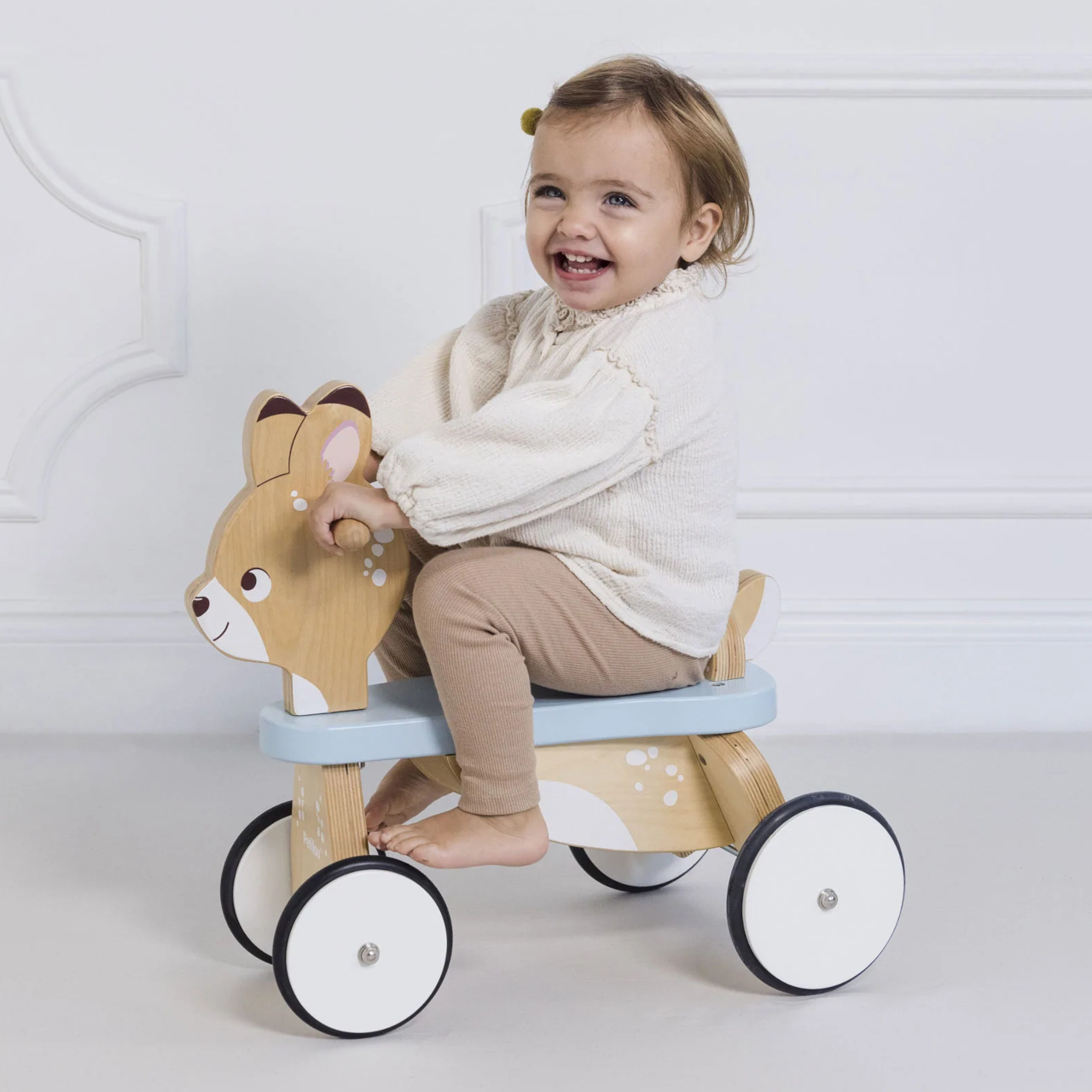 Dřevěné odrážedlo koloušek děti vezme na nezapomenutelnou projížďku plnou zábavy. Poutavý design a pevná konstrukce, nechybí ani skrytý úložný prostor na sedadle. Děti si v něm mohou ukrýt své poklady nebo svačinku. Malováno pastelovými barvami, vyrobeno z udržitelného kaučukového dřeva. Díky odrážedlu budou mít děti každodenní pohyb a budou silnější, procvičí si koordinaci a rovnováhu.