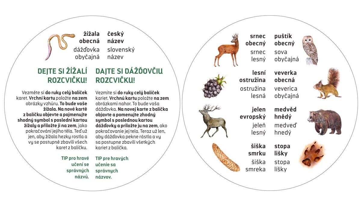 - 7 kariet s obrázkami a názvami ilustrácií v češtine a slovenčine.