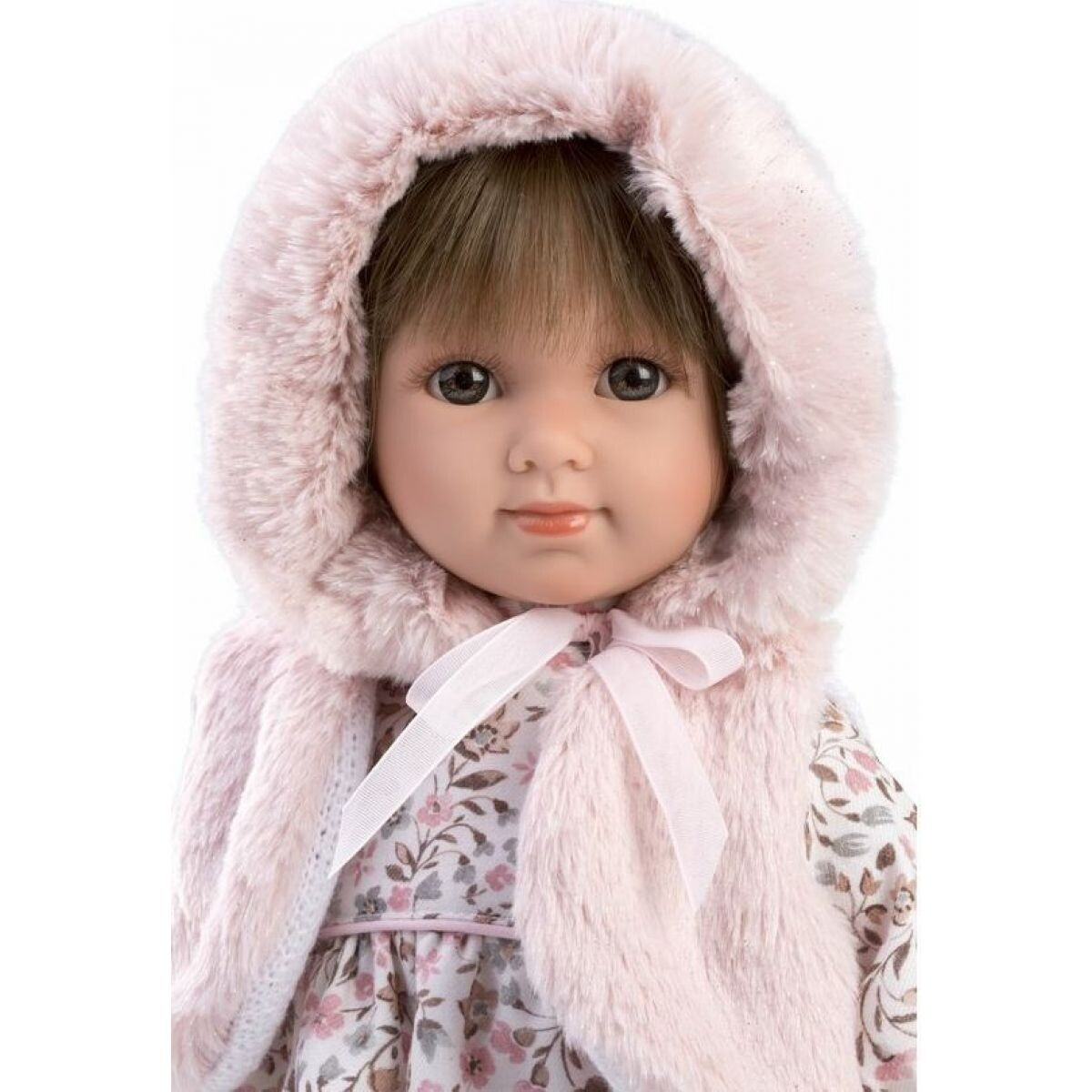 Bábika bez zvuku s látkovým telom a vlásky porastenými po celej hlave, podobajúca sa malej slečne. Veľkosť 35 cm.