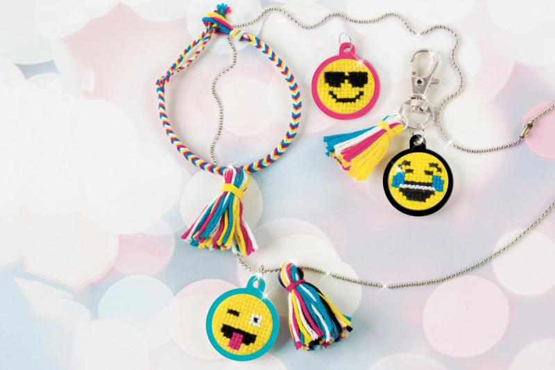 Vytvor si originálny náramok, náhrdelník alebo prívesok na kľúče! Pomocou bavlniek, plátienka a ďalších priložených pomôcok si môžeš vyrobiť vlastného smajlíka a vyzdobiť si s ním svoj náramok či náhrdelník. Súprava obsahuje: 3 prívesky, vyšívací kruh, vyšívacie plátno, 5 farieb bavlniek, ihla, náprstok, kovovú retiazku (50 cm), kovové krúžky, kovovú karabínu, obrázkový návod. Vhodné pre deti od 8 rokov.