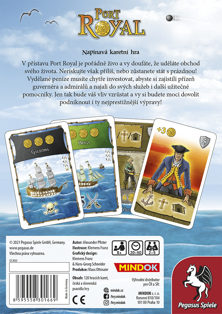 Napínavá kartová hra. V prístave Port Royal je poriadne živo a vy dúfate, že sa vám podarí obchod vášho života. Neriskujte však príliš, nikdy neviete, kde narazíte na pirátov! Zarobené peniaze musíte múdro investovať, aby ste si zaistili priazeň guvernéra a admirálov a najali do svojich služieb ďalších užitočných pomocníkov. Len tak bude váš vplyv vzrastať a vy si budete môcť dovoliť podniknúť dobrodružné expedície.
