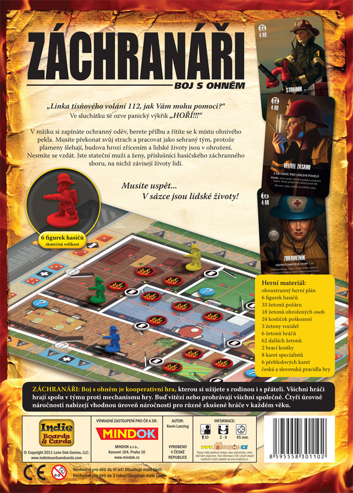 Kooperatívna dosková hra, ktorú si užijete s rodinou i s priateľmi. Všetci hráči hrajú spolu v tíme proti mechanizmu hry. Buď víťazia, alebo prehrávajú všetci spoločne. Štyri úrovne náročnosti ponúkajú vhodnú úroveň výzvy pre rôzne skúsených hráčov v každom veku. Musíte prekonať svoj strach a pracovať ako zohratý tím, pretože plamene šľahajú, budova hrozí zrútením a ľudské životy sú v ohrození. Nesmiete sa vzdať. Ste statoční muži a ženy, príslušníci hasičského záchranného zboru, od ktorých závisia životy ľudí.