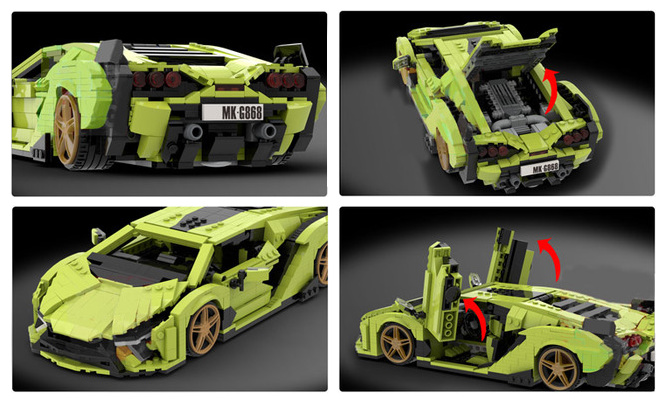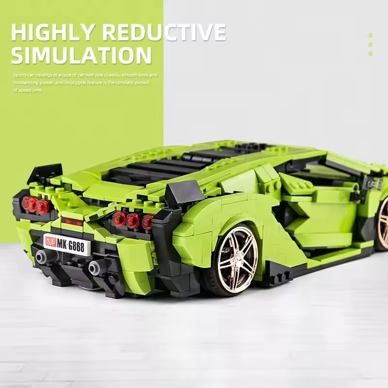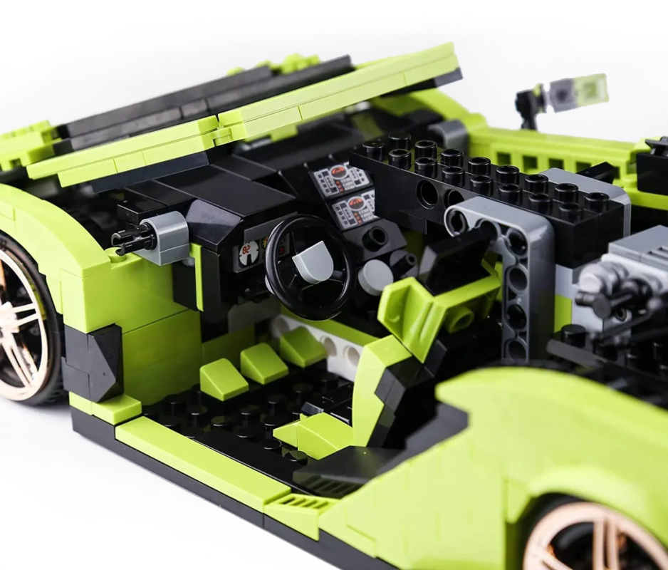Stavebnica modelu automobilu Lamborghini Sián v charakteristickej zelenej farbe s čiernymi doplnkami predstavuje vrchol modelárskeho umenia. Tento model je možné poskladať z 1133 dielikov a vďaka spolupráci so známym dizajnérom stavebníc Brixpertom, je každý detail precízne vypracovaný.