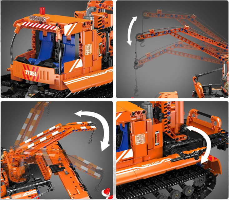 Táto snežná rolba Mould King 17051 nielen skvele vyzerá, ale taktiež ponúka hodiny zábavy pri skladaní aj samotnom ovládaní. Užite si kombináciu precízneho spracovania, pohyblivých funkcií a modernej technológie!
