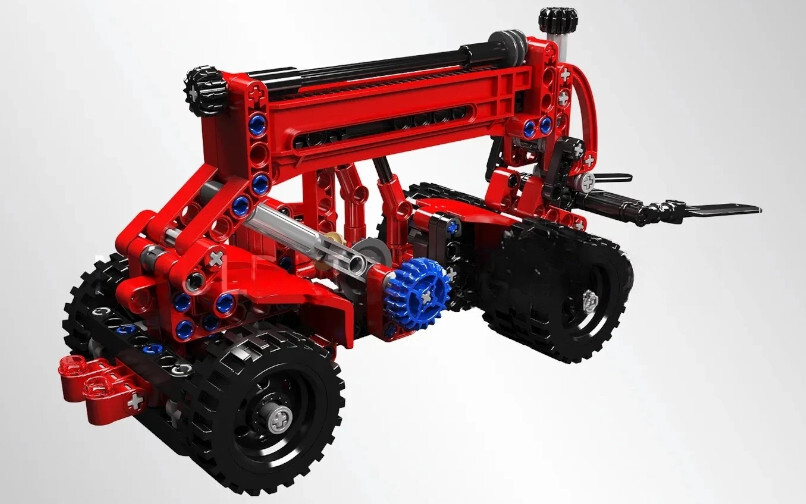 Stavebnicu zložíte z 218 dielikov podľa prehľadného obrázkového návodu. Hotový model meria 27,1 × 8,8 × 11 cm a je vybavený mechanicky ovládaným teleskopickým ramenom. Deti môžu ručne ovládať vysúvanie ramena, zdvíhanie ramena a tiež naklápanie vidlice - skvelý spôsob, ako podporiť jemnú motoriku aj logické uvažovanie.