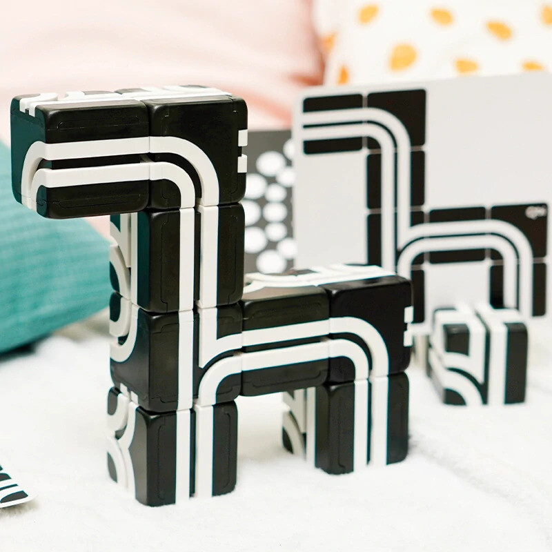 Táto sada kociek spája interaktívnu hru s rozvojom jemnej motoriky a myslenia. Hmatové podnety a skladacie dráhy pomáhajú zlepšovať koordináciu ruka-oko a budovať sebadôveru detí.