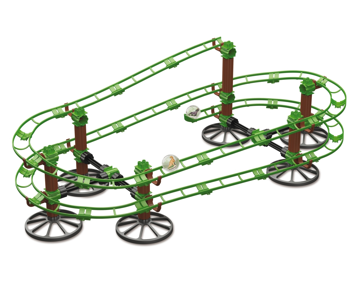 Stavebnica Skyrail Jurassic vám umožní postaviť si skvelú visutú guľôčkovú dráhu dlhú až 4 metre. Tá sa potom stane dejiskom úžasných prehistorických dobrodružstiev s vašimi obľúbenými dinosaurami. Stavebnica Skyrail Jurassic totiž bola navrhnutá tak, aby mohla využívať veľké priehľadné guľky, v ktorých vnútri sa skrývajú fantastické dinosaury. Vďaka pozorovaniam, pokusom a objavom môžete zaujímavým spôsobom preniknúť do tajomného sveta fyziky a prirodzene porozumieť niektorým jeho základným javom (rýchlosti, príťažlivosti, odstredivej sile a treniu).