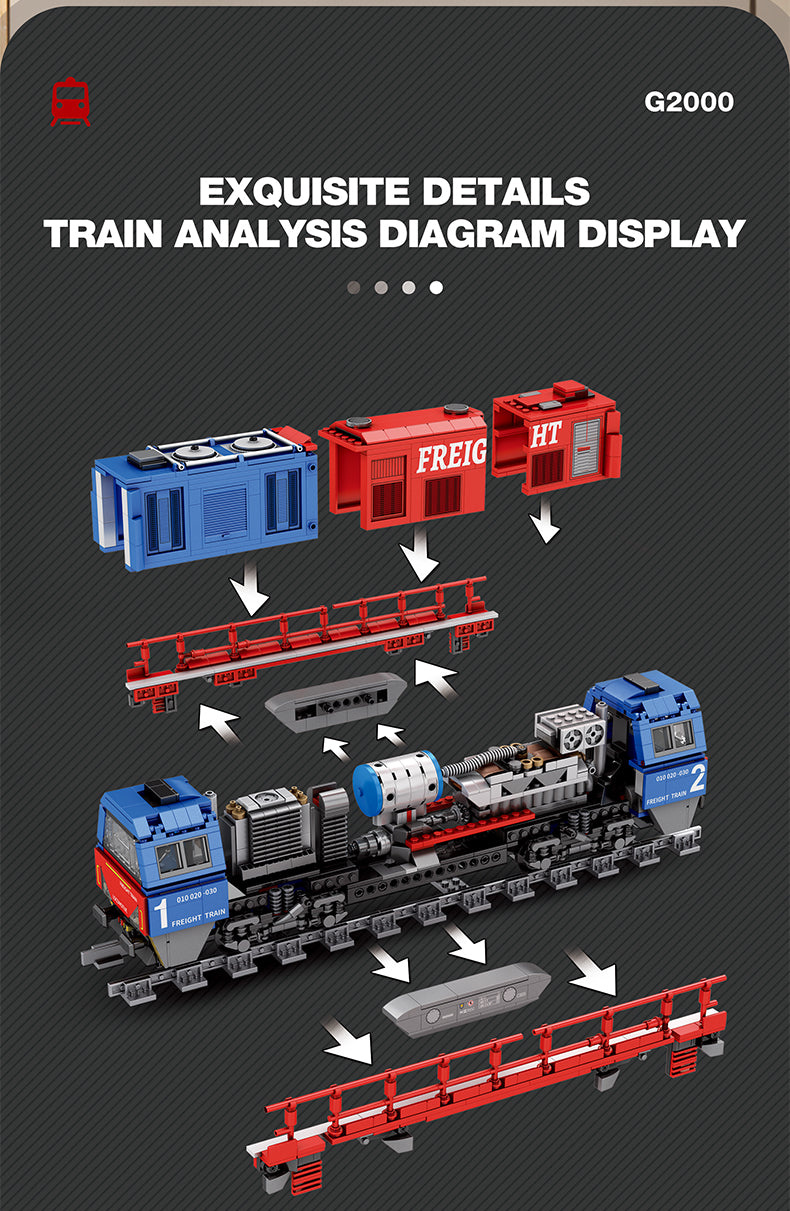 Stavebnica obsahuje 1980 dielikov, z ktorých po zložení vznikne pôsobivá dieselová lokomotíva s dĺžkou 51 cm, výškou 22 cm a šírkou 20,4 cm. Každý prvok je navrhnutý tak, aby zachytil charakteristické rysy skutočných lokomotív G2000 – od kabíny rušňovodiča až po technické prvky podvozku.