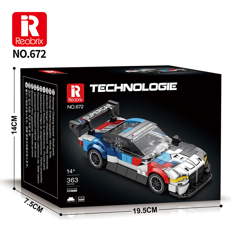 Postavte si vlastný pretekársky špeciál inšpirovaný modernými vozidlami kategórie GT3! Stavebnica Reobrix 672 M4 GT3 prináša dynamický model športového auta, ktorý kombinuje agresívny dizajn, aerodynamické línie a radosť z detailného skladania.