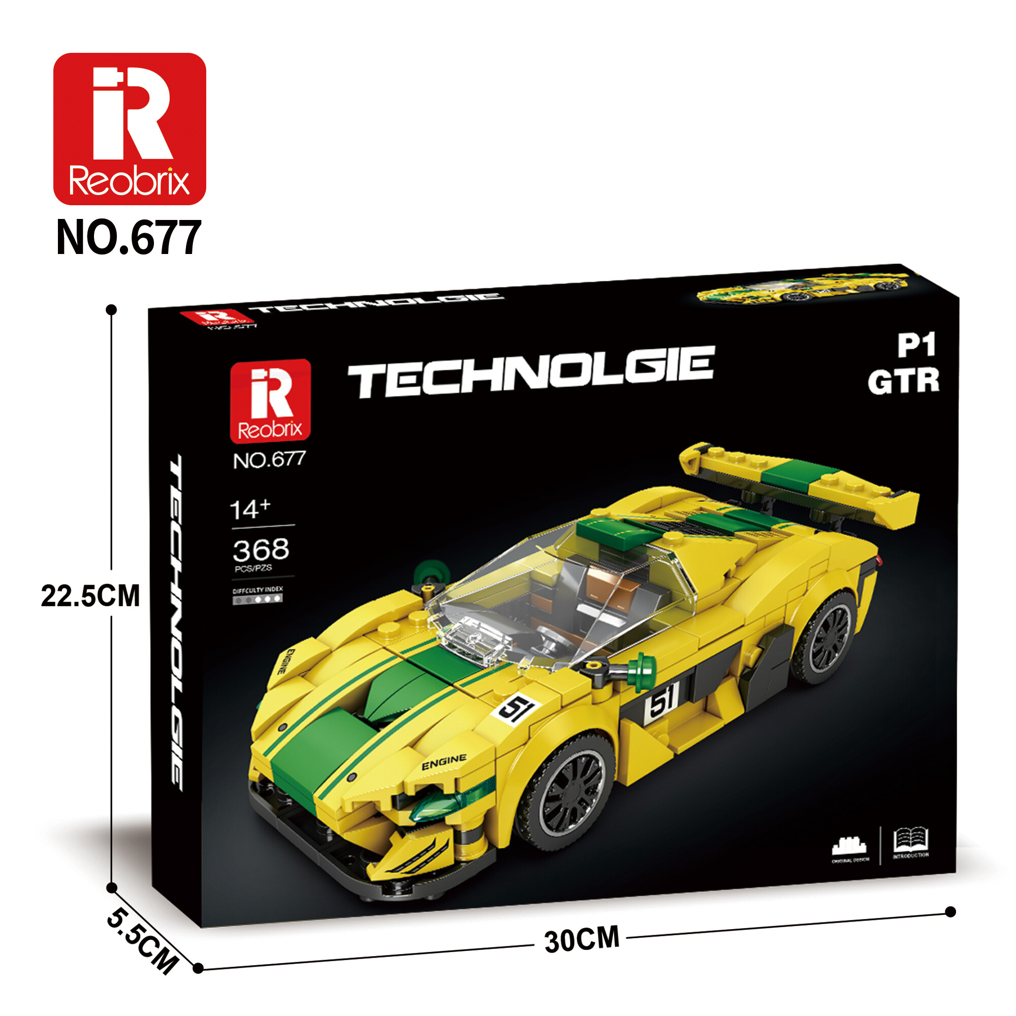 Zažite atmosféru skutočného pretekárskeho okruhu! Reobrix P1 GTR je model inšpirovaný legendárnym supersportovým vozidlom McLaren P1 GTR (bez licencie), ktorý vyniká extrémnou aerodynamikou, agresívnymi líniami a ikonickou závodnou siluetou. Vďaka 368 dielikom postavíte dynamický model v mierke 1 : 24 – ideálny na vystavenie na polici, pracovnom stole alebo ako súčasť zbierky športových vozidiel Reobrix.