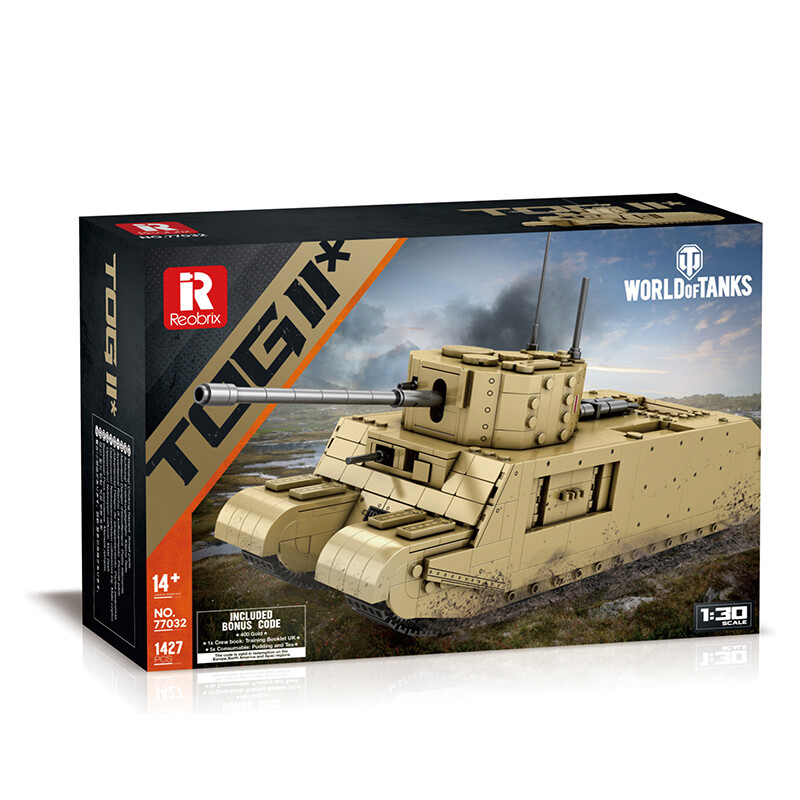 Model Reobrix 77032 Tank TOG II – World of Tanks Edition je poctou slávnemu britskému superťažkému tanku TOG II, známemu z hernej série World of Tanks. Tento mimoriadne detailný model spája históriu vojenskej techniky s modernou presnosťou konštrukcie a poteší každého fanúšika modelárstva, hier aj vojenského inžinierstva.