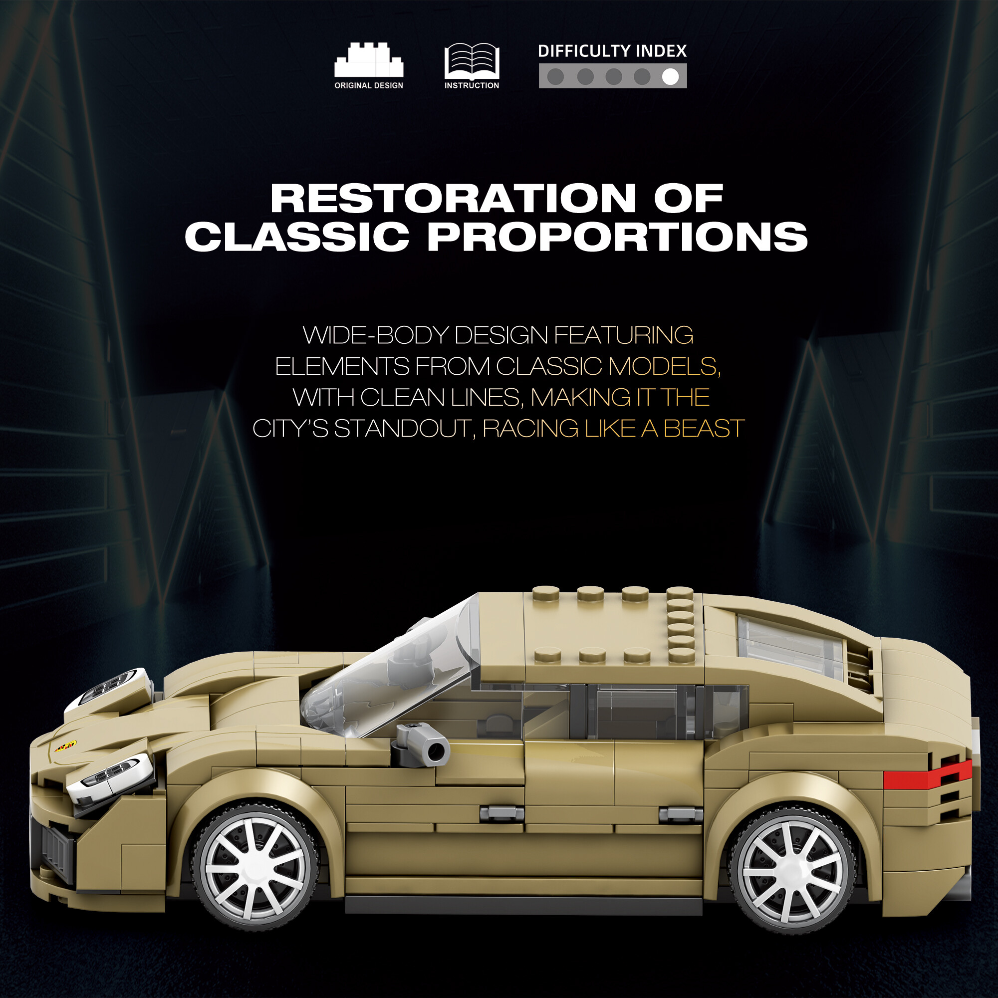 - Ideálny darček pre dospelých fanúšikov áut a stavebníc – elegantná dekorácia aj zberateľský kúsok.