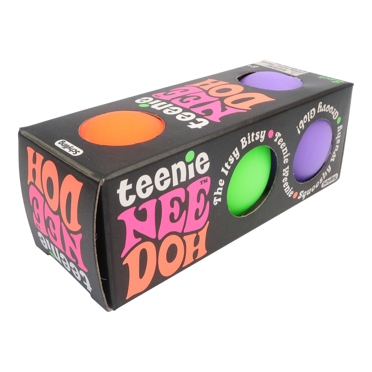 Schylling Teenie NeeDoh je antistresový míček a neposedná hračka, která děti zabaví na celé hodiny. Míček je mikro verze míčku Classic NeeDoh, která se snadno vejde do dlaní malých, dětských ručiček. NeeDoh se nedávno proslavil na TikTok s více než 150 miliony zhlédnutí a nyní je mezi dětmi velmi oblíbený. Míčky jsou vyplněny super měkkou směsí, díky čemuž jsou dokonalou hračkou. Lze je mačkat, tahat, rozbíjet a vždy se vrátí do původního tvaru. Ideální pro zábavu na cestách nebo jako prostředek proti úzkosti, pomáhá také dětem soustředit se a udržet pozornost. Vhodný také jako dárek.