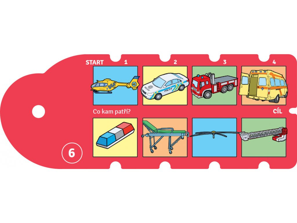 Vieš, koho máš volať o pomoc? Nájdeš správne vybavenie jednotlivých záchranárov? Hľadaj odpovede na 48 otázok – a správnosť odpovede si sám skontroluj. Ideálna výuková hra, pri ktorej sa dieťa učí systematicky priraďovať, porovnávať, počítať a hľadať rozdiely, zhody alebo chyby. Pomocou špagátu spája logické dvojice a na rubovej strane mu špagát ukáže, či sú odpovede správne. Pomôcka vedie dieťa k samostatnosti a sebareflexii. Odporúčané odbornými pedagógmi.