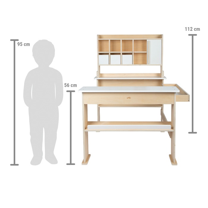 Perfektní prodejní stánek pro malé prodavače a prodavačky! Tento prodejní stánek z přírodního dřeva v kombinaci s bílou barvou zaujme nejen vzhledem, ale i propracovanými detaily. Nabízí velkorysý prostor pro hraní, praktické úložné prvky a realistické funkce, které děti vtáhnou do světa nakupování. Tři zásuvky na drobnosti, boční přihrádka a posuvné dveře v zadním regálu zajišťují přehled a dostatek místa pro dokoupitelné příslušenství. Robustní konstrukce zajišťuje stabilitu i při delším hraní.