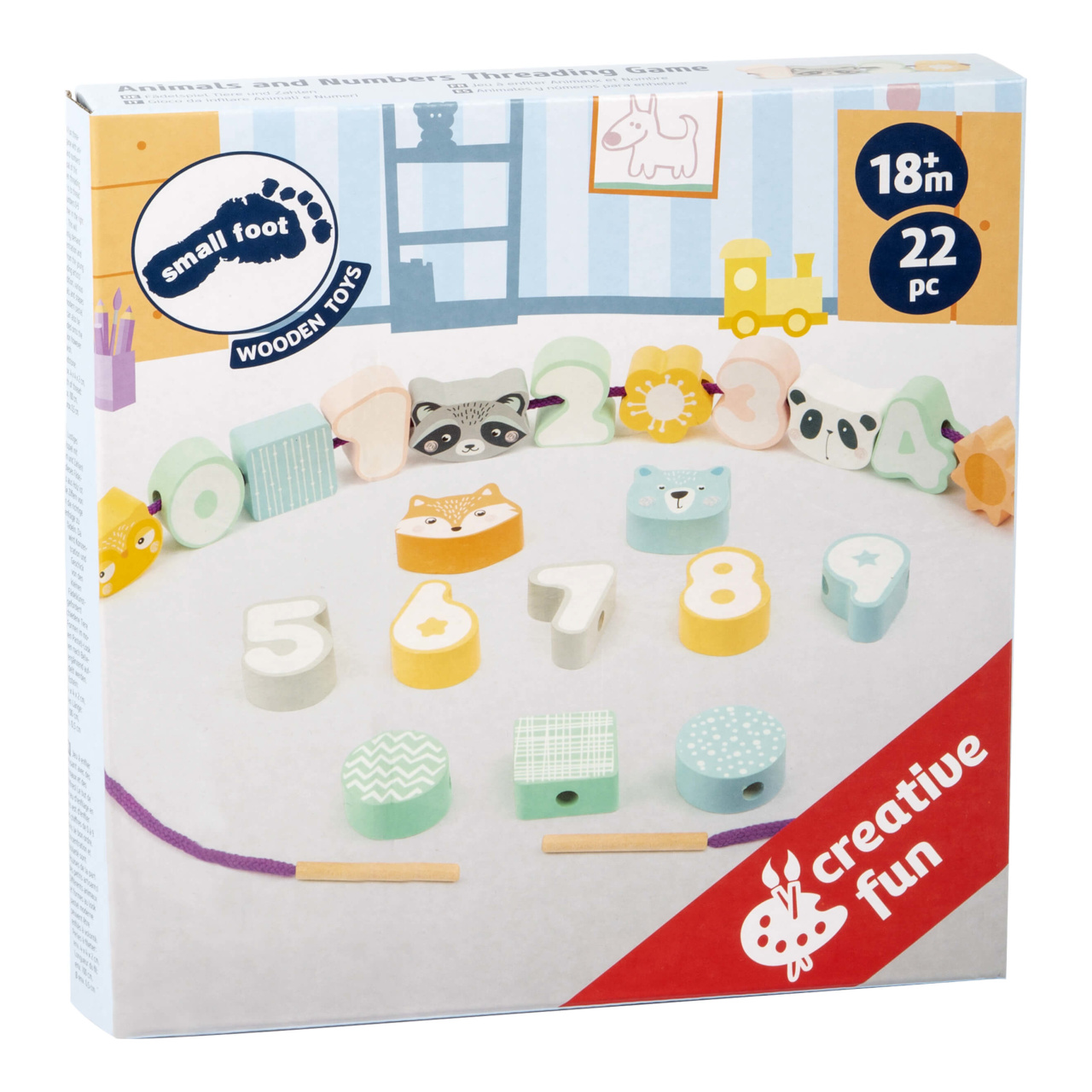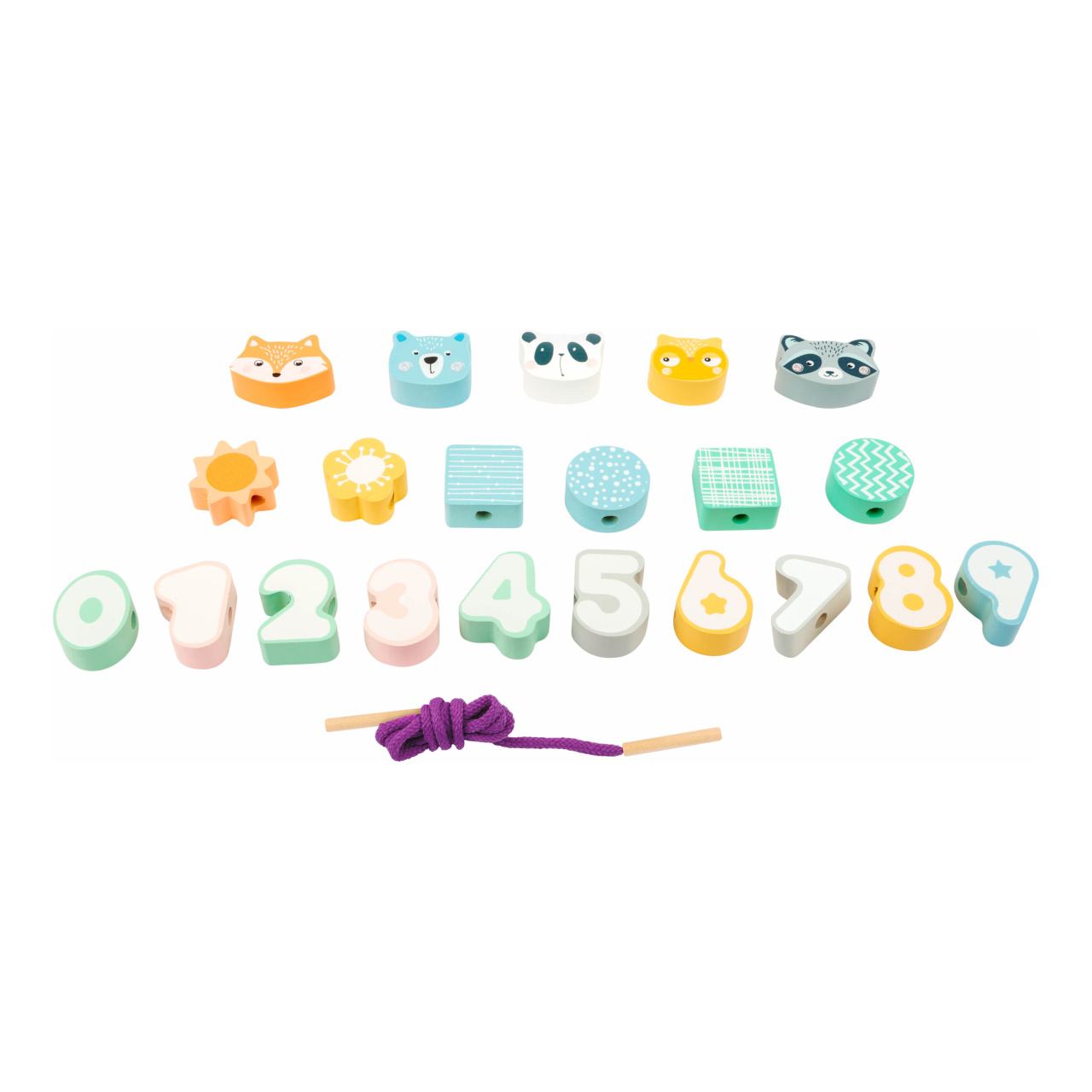 Zábavná hra se zvířaty a čísly v pastelových barvách! Cílem této hry je navléct čísla 0-9 ve správném pořadí. Dřevěné zakončení šňůrek dětem pomůže při navlékání a mohou vytvořit různé kombinace s čísly i zvířátky dle vlastní fantazie.