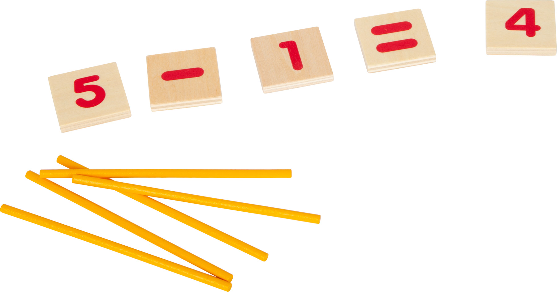 Počítání jednoduše! Tato krabička dětem pomůže s jejich prvními počty do desíti. Barevné počítací tyčinky a dřevěné destičky mohou být použity ke sčítání i odčítání. Počítací tyčinky jsou zde pro děti, které potřebují k počtům vizuální pomůcku. Ideální hra pro děti předškolní a 1. třídy ZŠ. Vše je uloženo v dřevěné krabičce s posuvným víkem. Ideální také na cesty.