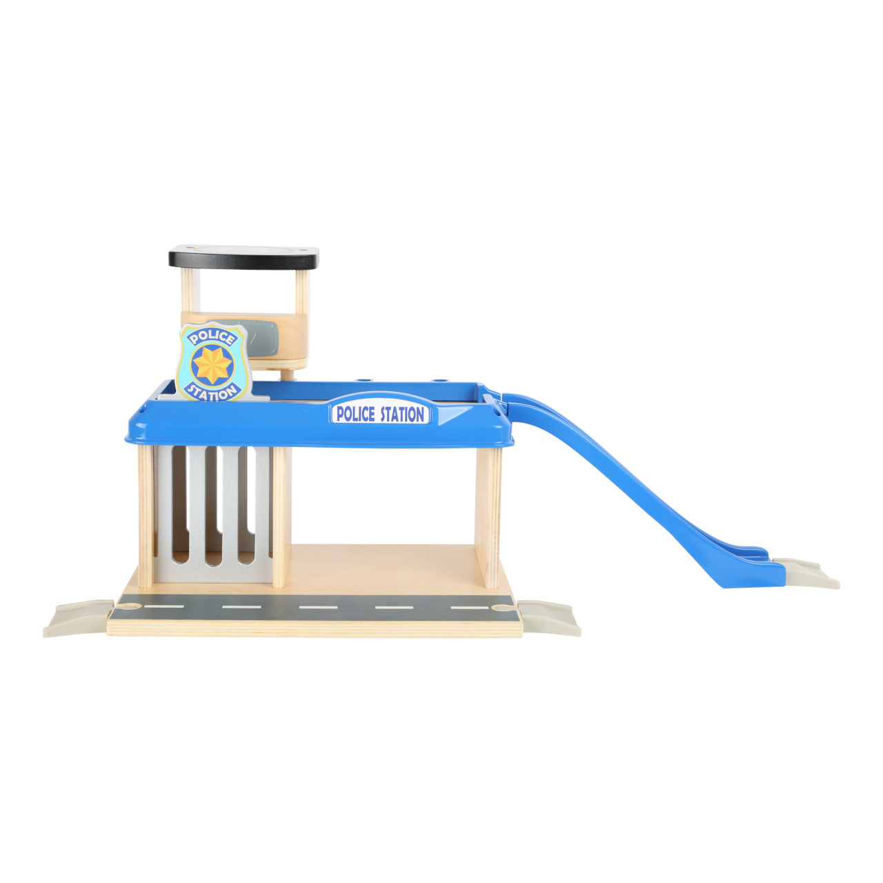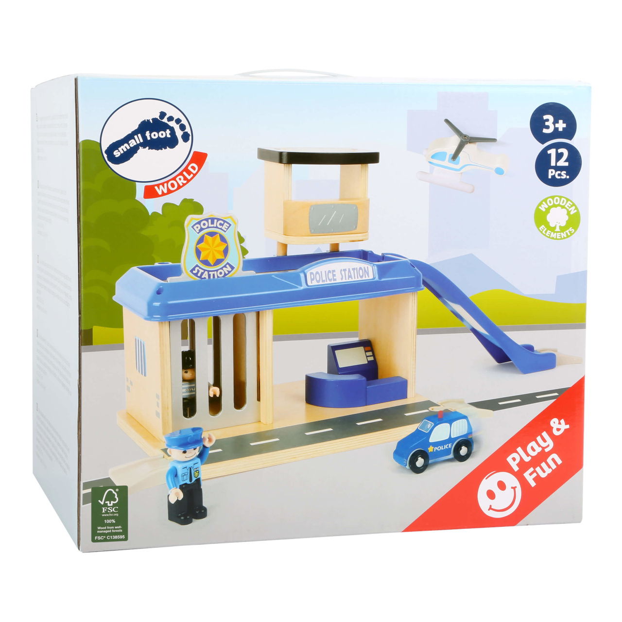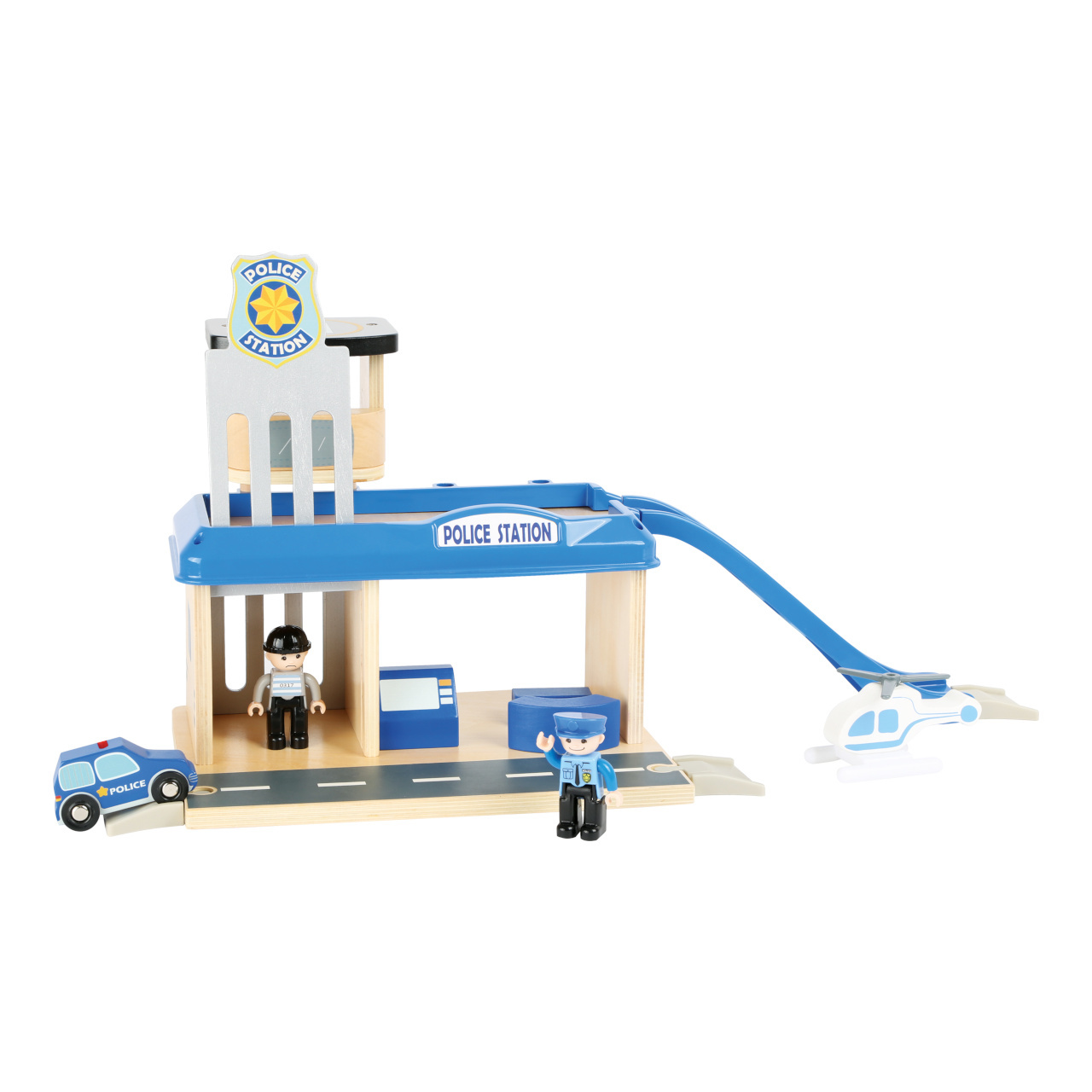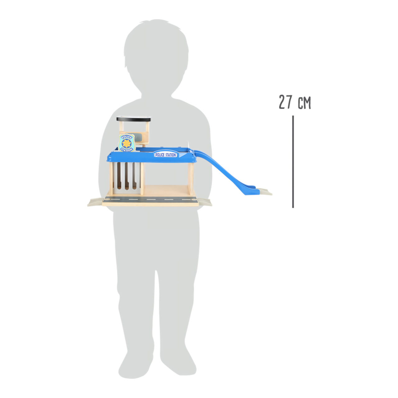 Žádný dareba už neunikne spravedlnosti! S policejní stanicí mohou děti rozehrát fantastická dobrodružství, mezi příslušenstvím je jim totiž k dispozici jak policejní autíčko a vrtulník, tak i pohyblivá figurka policisty a zločince. Stanice nabízí dvě podlaží a věž s heliportem. V přízemí naleznete celu s výsuvnou mříží a v patře lze s využitím nájezdové rampy zaparkovat. Díky kombinaci silné překližky a robustních plastových dílů může hračka nabídnout vysokou odolnost a životnost. Dřevo použité při její výrobě bylo získáno z udržitelných zdrojů a nese certifikaci FSC®. Lze ji rozšířit množstvím příslušenství a je také plně kompatibilní s vláčkodráhami jiných velkých výrobců. Hlavní vlastnosti:stanice, 2 díly interiérového vybavení, autíčko, helikoptéra a 2 figurky2 podlaží s věží, rampa a cela s výsuvnou mřížírobustní a odolné provedeníkompatibilní i s vláčkodráhami dalších výrobcůvyrobeno s použitím 100% FSC® dřeva Značka a certifikát FSC® (Forest Stewardship Council) zaručuje, že dřevo, ze kterého byl produkt vyroben, nebylo vytěženo nelegálně a pochází z lesů obhospodařovaných šetrným či přírodě blízkým způsobem, ve kterém jsou dodržovány přísné environmentální a sociální požadavky. Značka FSC® na výrobku znamená, že svým nákupem pomáháte chránit lesy a podporujete šetrné, odpovědné či přírodě blízké hospodaření, díky kterému jsou naše lesy stabilnější, zdravější, mají přirozenou druhovou skladbu a lépe odolávají negativním následkům klimatických změn.