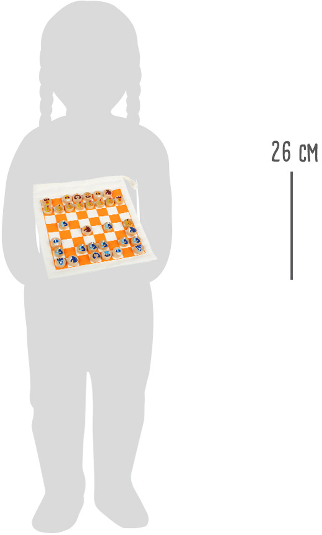 Je to v kapse! Není nic lepšího než partička šachu během cestování. Bavlněný pytlík má potisk šachovnice, takže slouží zároveň jako herní pole i úložný prostor pro herní dílky, které jsou vyrobené ze 100% FSC® certifikovaného dřeva. Můžete také použít pro hru dámy.