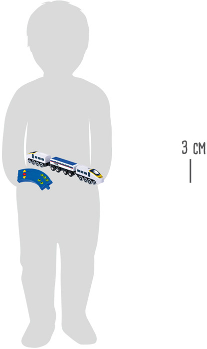 Moderní lokomotiva z plastu a dřevěného vagónku s dálkovým ovládáním, má celkem 8 funkcí. Lokomotivu můžete ovládat do dvou směrů, po stisknutí tlačítka vydává zvuky(hlášení z reproduktoru, signál brány, píšťalka průvodčího, zvuky jízdy, přejezd přes most), dokonce můžete zapnout i světla. Skvělý doplněk k oblíbené dřevěné vláčkodráze. Vláček je kompatibilní se všemi běžnými značkami vláčkodráh jako je Bigjigs, Maxim, Brio, Woody, Bino, Tomáš, Tesco, Ikea a další. Baterie mašinky 3xAAA a 2xAA ovladače nejsou součástí balení.