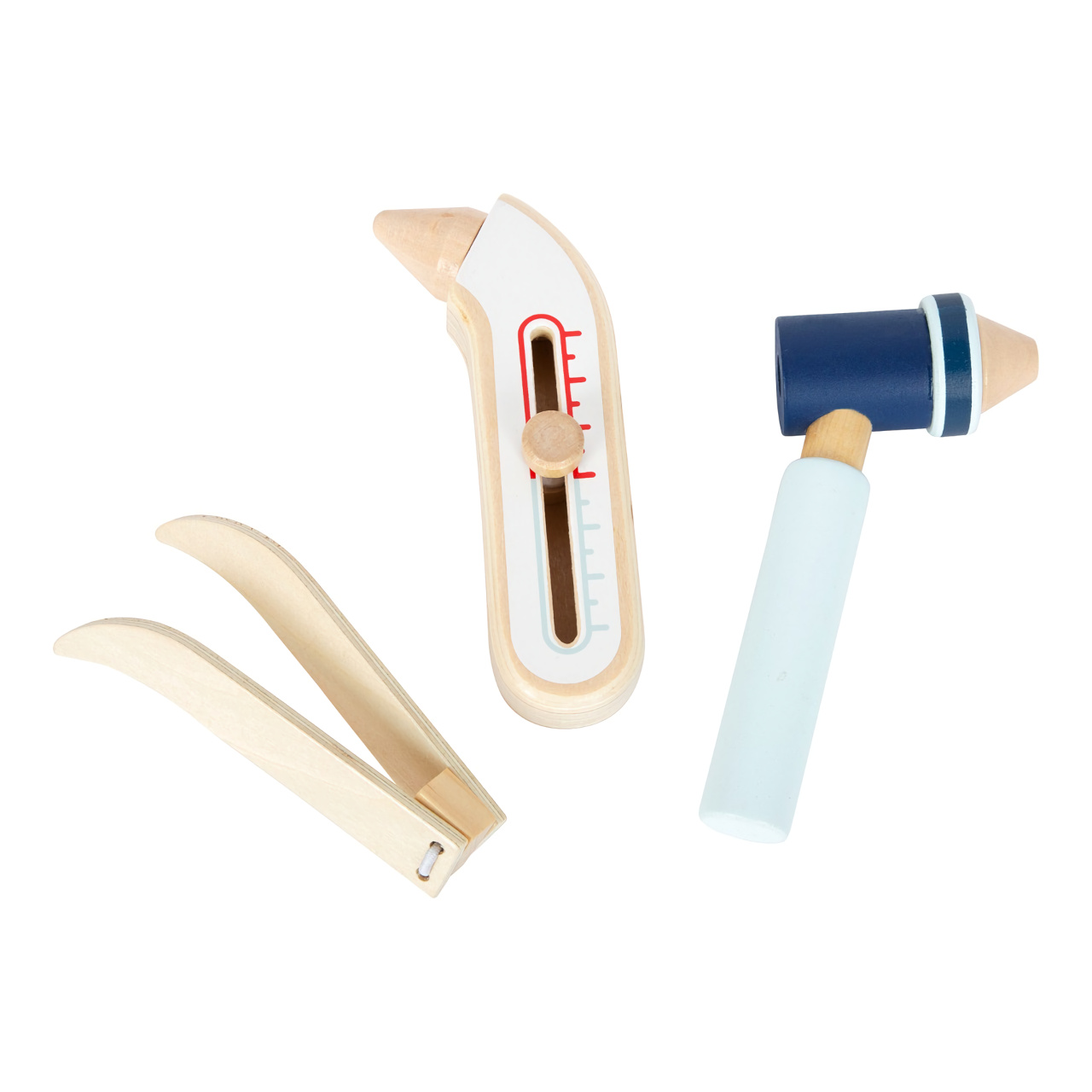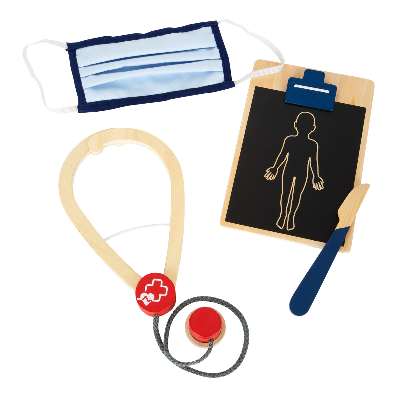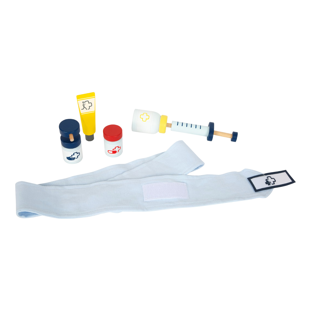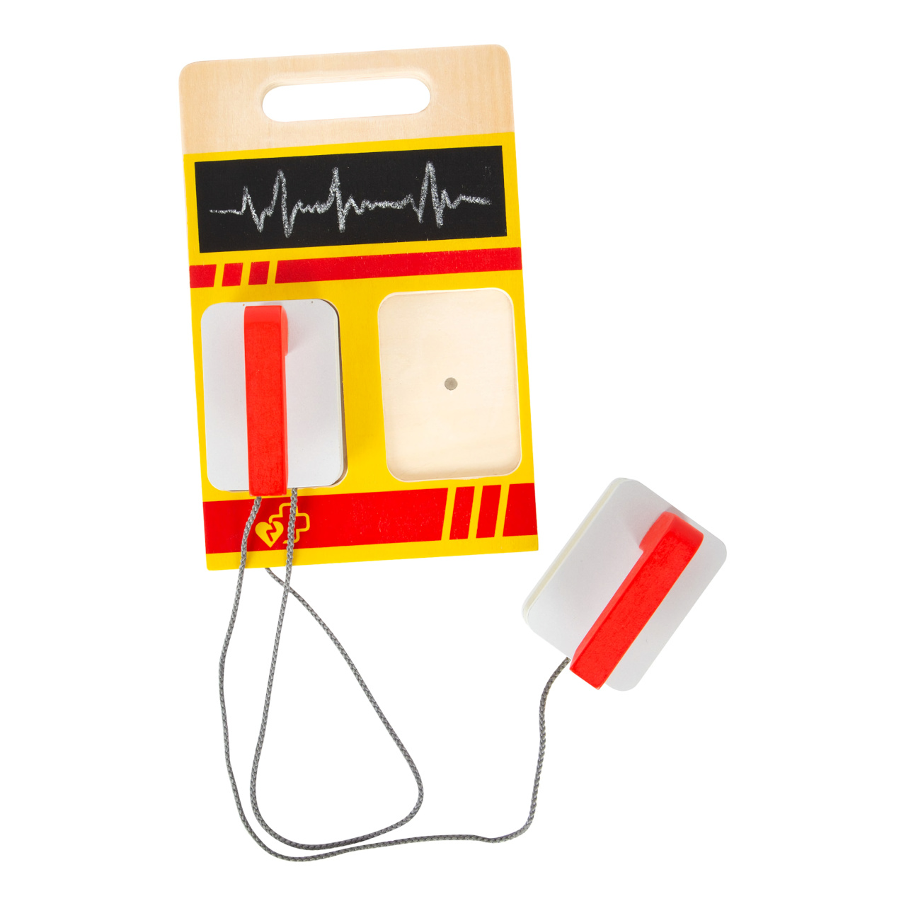 Vše pro naléhavé případy! Tento realistický batoh pro záchranáře má jasné barvy, nastavitelné popruhy a mladí záchranáři v něm najdou všechny „opravdové“ lékařské pomůcky. Dvojitý zip a uvnitř elastické kapsy nabízí mnoho úložného prostoru a rychlý přístup k záchranářským pomůckám z pevného dřeva. Nejlepšími doplňky jsou zřejmě tlakoměr s manžetou a balónkem, otoskop s lupou a defibrilátor s tabulkou pro křídu. Tento inovativní a obsáhlý set lékařských hraček obsahuje mnoho „opravdových“ lékařských nástrojů a přístrojů, s kterými si děti opravdu vyhrají, to vše v jednom batohu. Dále v batohu najdete teploměr, dětské textilní roušky, ampule s otvorem pro vložení stříkačky pro případ nouze, dezinfekční sprej s pumpičkou, infúzi, náplasti na suchý zip, stetoskop, injekční stříkačku s pohyblivým mechanismem, skalpel, pinzetu a rádio. S těmito pevnými hračkami mohou děti objevovat a zkoušet, jaké je to být záchranářem. Ilustrace na lékařských pomůckách dětem poradí rozeznat nástroje a také jim možná zjednoduší jejich použití.