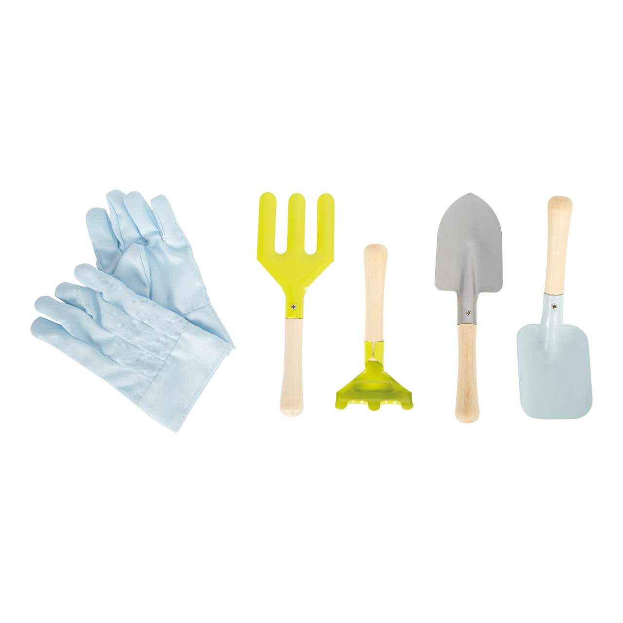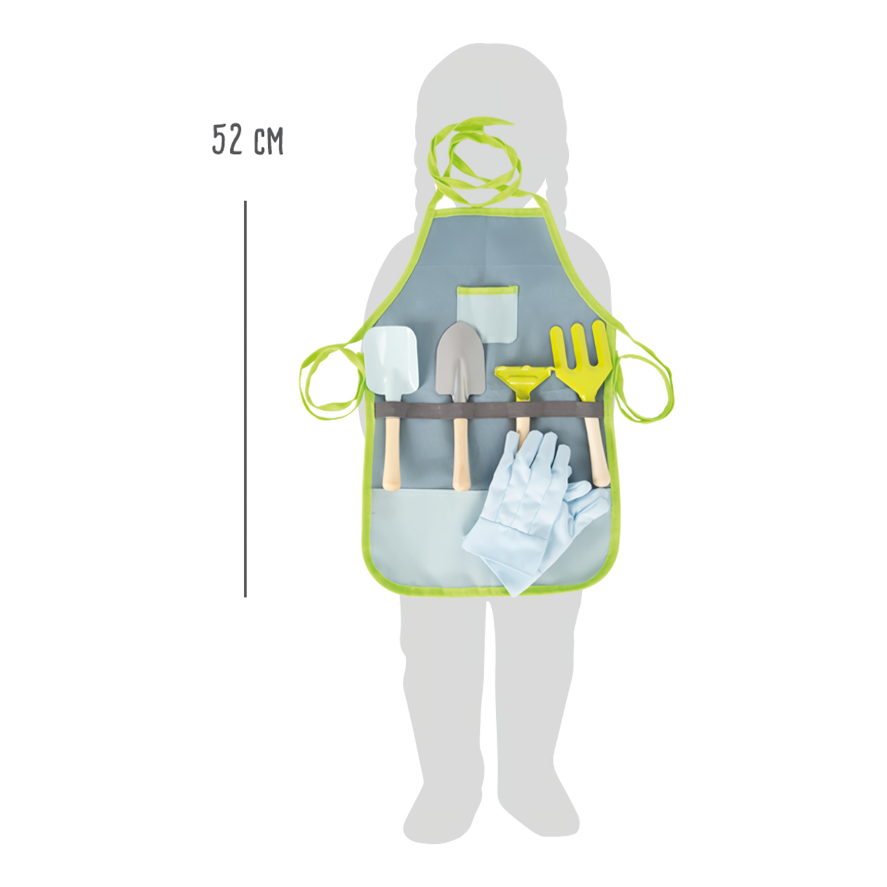 S touto praktickou sadou zahradních pomůcek, která se skládá ze zástěry pro děti s náprsními kapsami, zahradnických rukavic, čtyř malých zahradnických nástrojů (rýč, hrábě, lopata a vidle), budou mít děti vždy ten pravý nástroj po ruce! Záhradní nářadí z robustního kovu s dřevěnými rukojeťmi vhodnými pro děti. Tato zahradní zástěra v jednoduchých trendy barvách a rukavice chrání děti před nečistotami a poškozením oblečení. Je to absolutní nutnost pro všechny mladé zahradní fanoušky, kteří chtějí skutečně pomoci svým rodičům na zahradě! Zahradnické zástěry lze také použít jako kuchyňské zástěry či zástěry na malování! Ideální doplněk.