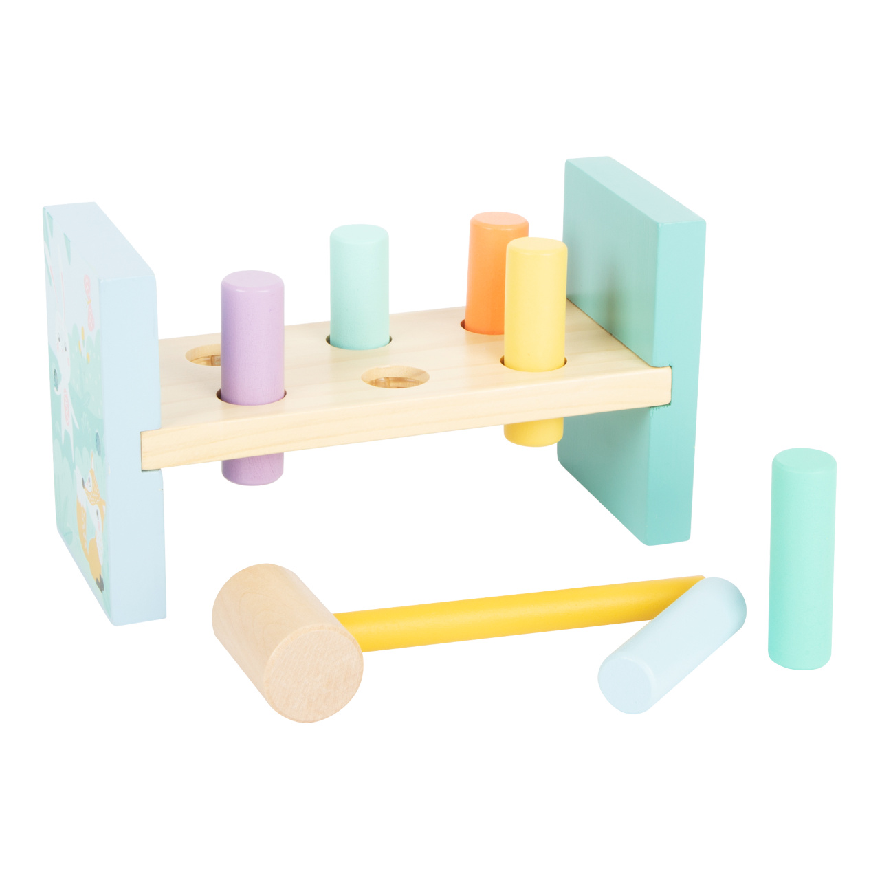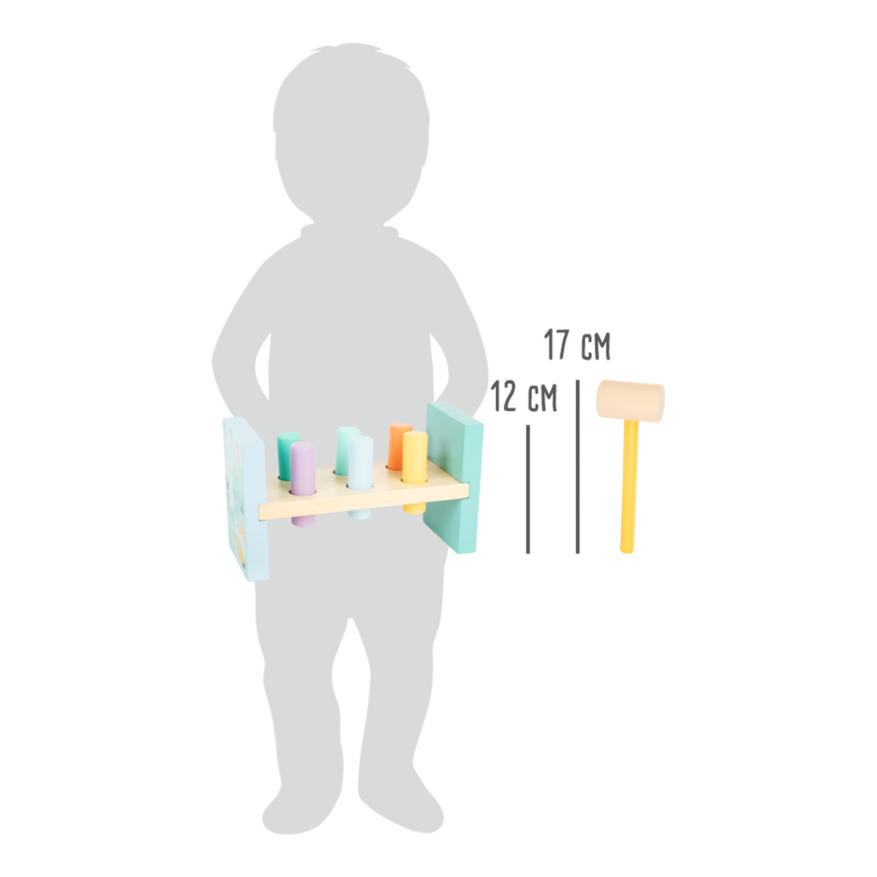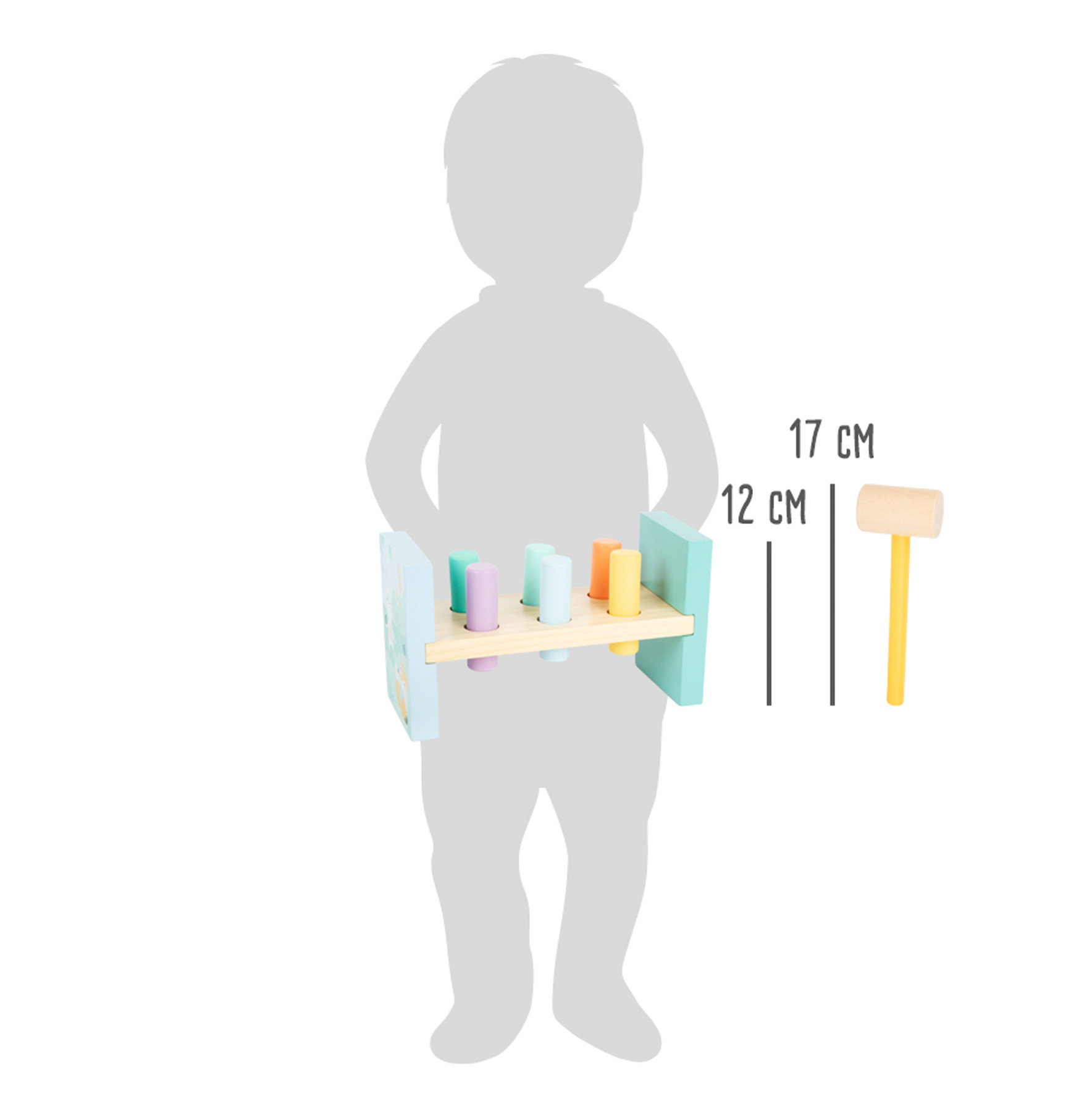 I zatloukání může být stylové! Se zatloukací hračkou v pastelových barvách si děti mohou změřit svou sílu. Klasická hra, která trénuje koordinaci ruka-oko a motoriku dětí. Zatloukačka má krásné barvy a ilustraci zvířátek. Po zatlučení všech kolíků hračku jednoduše otočte. Krásná zatloukací hračka je součástí produktové řady „Pastel“ a zaujme vysokým viditelným podílem dřeva a moderním zabarvením v pastelových barvách.