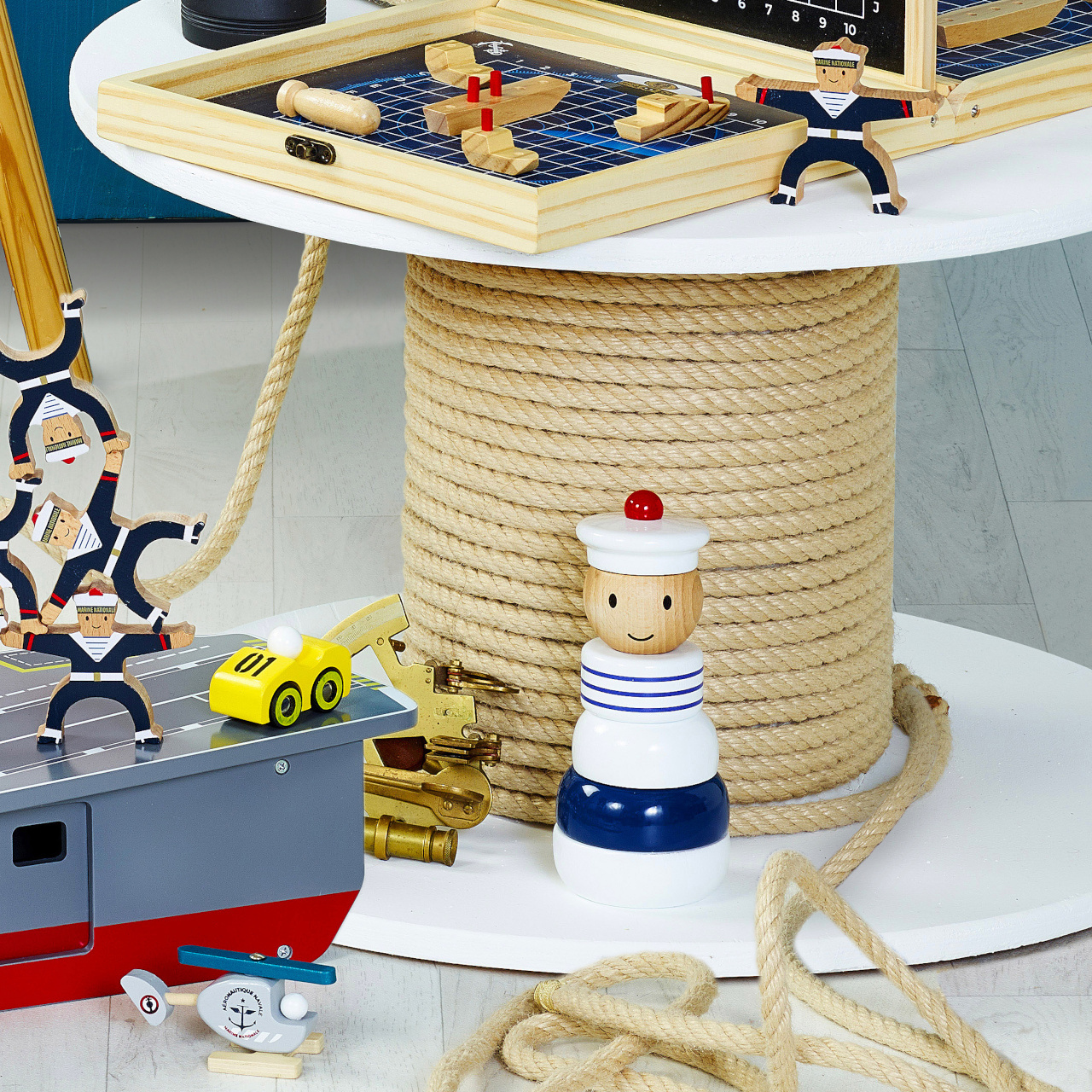 Robustní nasazovací věž ve tvaru námořníka je vyrobena z masivního dřeva. Svou originální barevností vkusně doplní a zútulní dětský pokojíček.