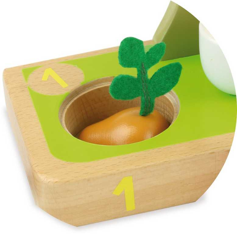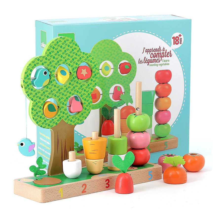 Hra Nauč sa počítať s motívmi záhradky prebúdza zmysly detí a je ideálna na učenie počítania a rozoznávanie tvarov. Táto drevená hračka sa skladá zo základnej dosky, zeleniny a stromu s otočnými dielikmi. Zelenina obsahuje napríklad mrkvu, pór a paradajky. Zeleninu a jej dieliky deti navliekajú na drevené tyče. Hračky Vilac majú značku francúzskej agentúry ADEME, to znamená, že tieto drevené hračky sú vyrábané ekologicky. Šetria životné prostredie, neznečisťujú pôdu, vodu a vzduch a neplytvajú energiami. Hračka je certifikovaná pre vek 1,5+. Najvyššia z tyčí je upevnená na špagátiku, v prípade pádu dieťaťa na ňu sa tyč odkloní.