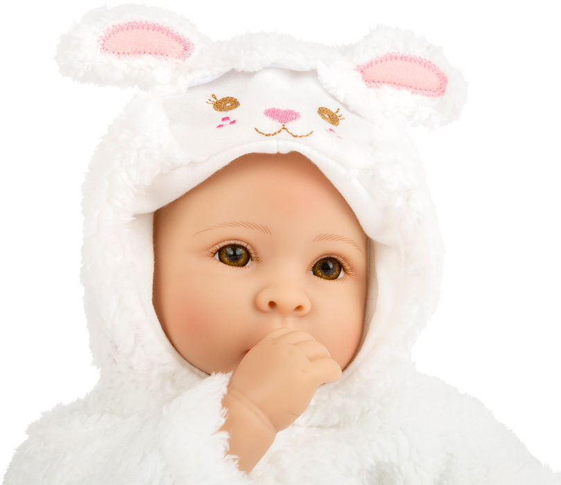 Tato roztomilá panenka si během chvilky získá srdce dětí! S útulným měkkým jednodílným oblečkem v designu ovečky je připravena do postele společně s plyšovou dekou. Hlava, nohy a ruce jsou vyrobeny z měkkého plastu. Tělo je z měkkého vyplněného přírodního materiálu a díky vzpřímené podpěře může sedět vzpřímeně. Tato okouzlující panenka by neměla chybět v žádné školce.