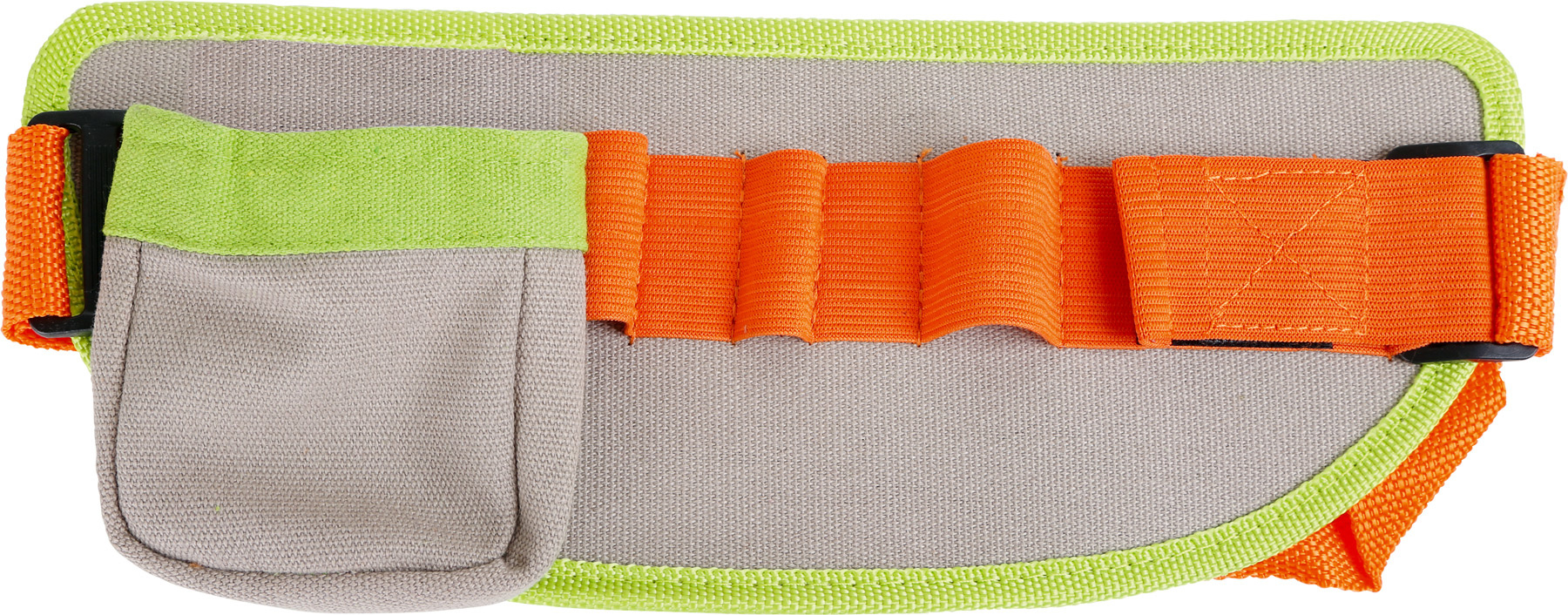 Praktický opasek na nářadí s nastavitelnou délkou je skvělým pomocníkem pro malého kutila. Sada obsahuje množství barevného lakovaného dřevěného náčiní – kladivo, šroubovák, klíč, úhelník, šrouby a matice, které jednoduše zaháknete za poutko nebo vložíte do malé kapsičky. Najde se něco k opravě, renovaci?