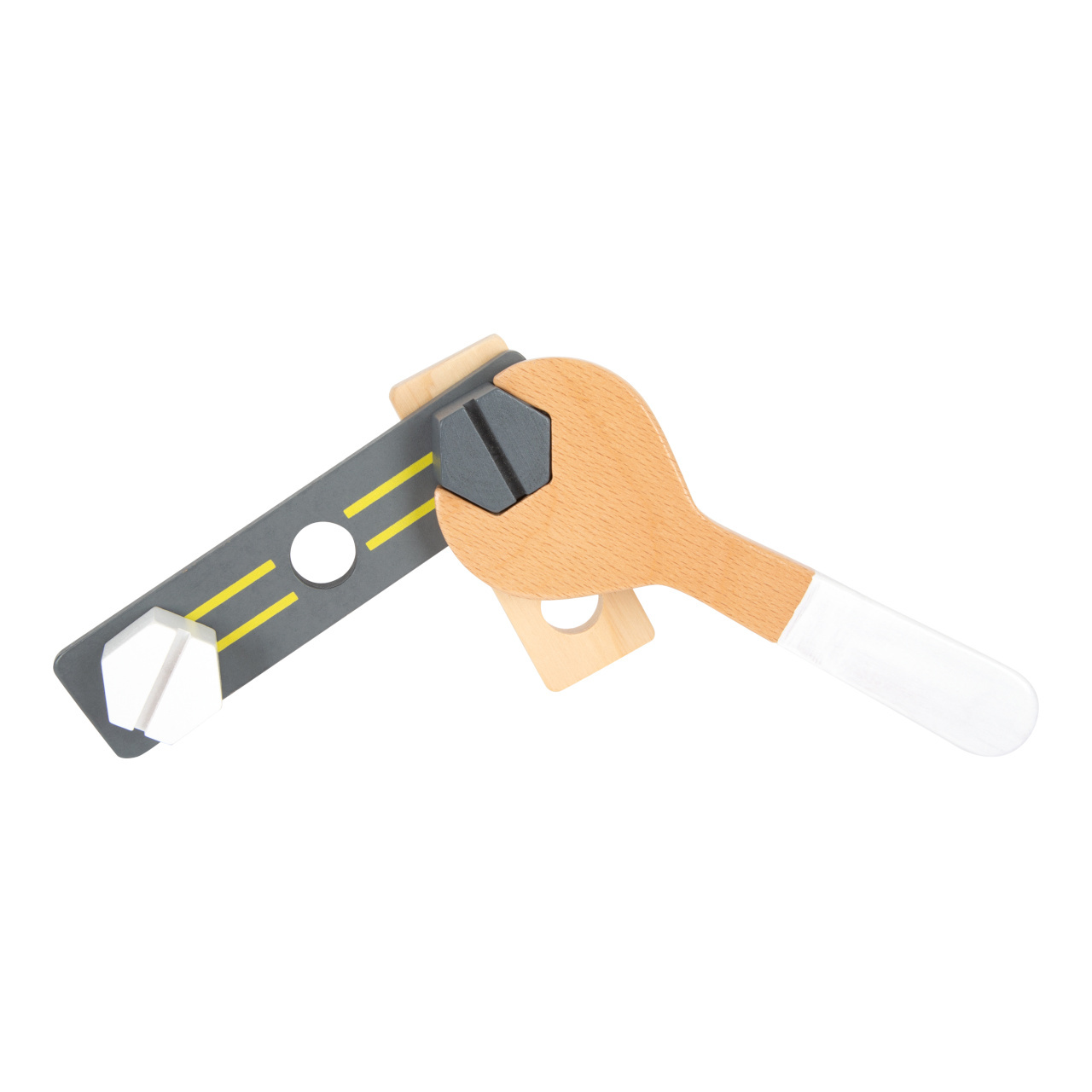 Opasek pro uložení nářádí! Opasek s nářadím s nastavitelnou velikostí pro mladé kutily, aby měli své nářadí vždy po ruce. Realistické nářadí ze dřeva, jako například šroubovák, klíč, perforované destičky. Perličkou je hasák a ráčna! Pásek se zapíná na klikací sponu.