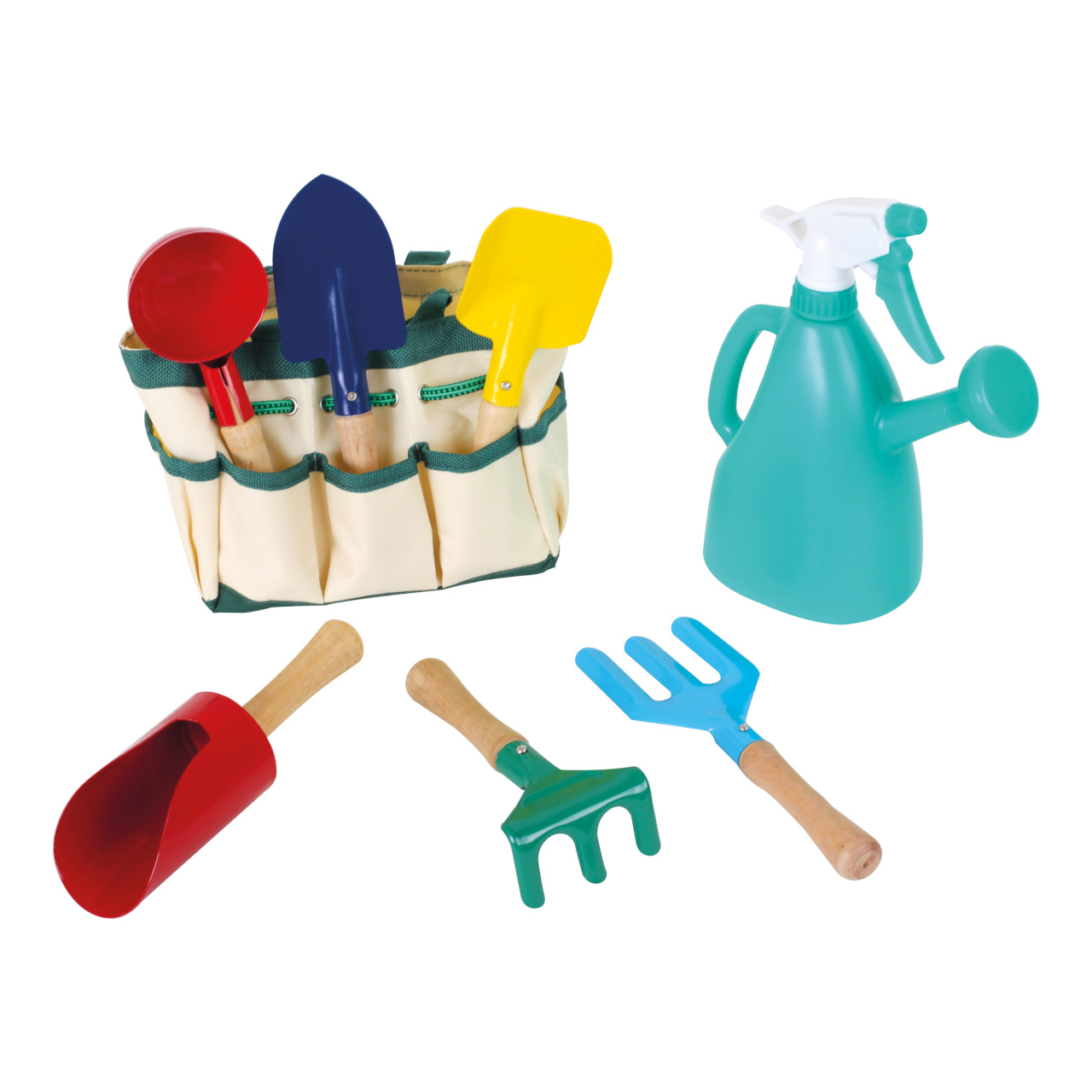 I malí zahradníci a zahradnice mohou na zahradě udělat velké věci. Tato sada s nářadím a konví, slibuje, že zažijete zábavu na vaší vlastní zahradě. Robustní zahradní brašna má mnoho úložného místa pro 7 zahradních nástrojů. V balení je lopatka, konev, hrábě aj.