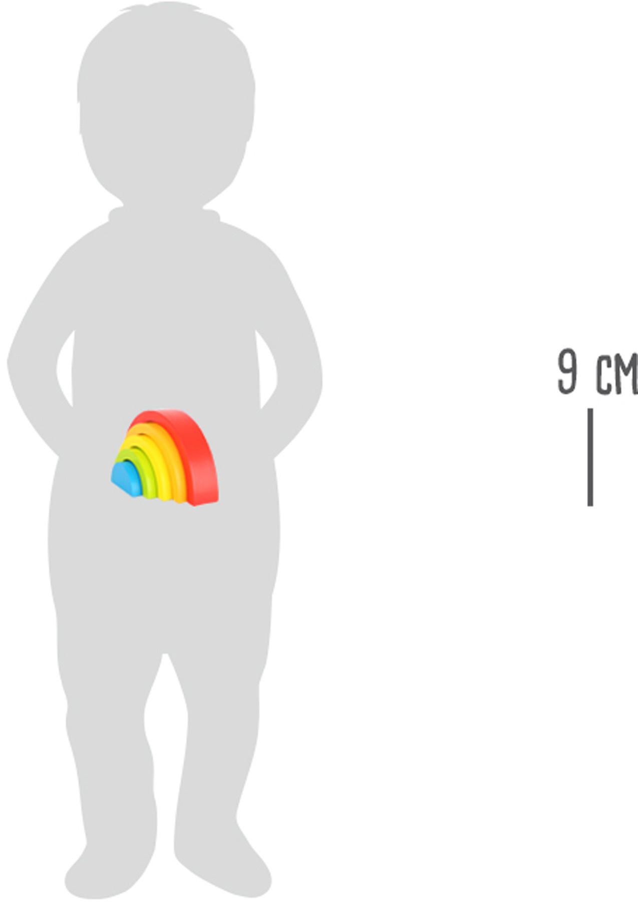 Umíte složit duhu ve správném pořadí? Tento pestrobarevný půlkruh z pevného dřeva je snadným vstupem do světa motorických dovedností. S vodou a slinám odolnými barvami nabízí malým dětem nejen možnost naučit se barvy a tvary, ale také prostorové povědomí, obratnost a koordinaci rukou a očí. Skvělá didaktická hračka pro domácnost.