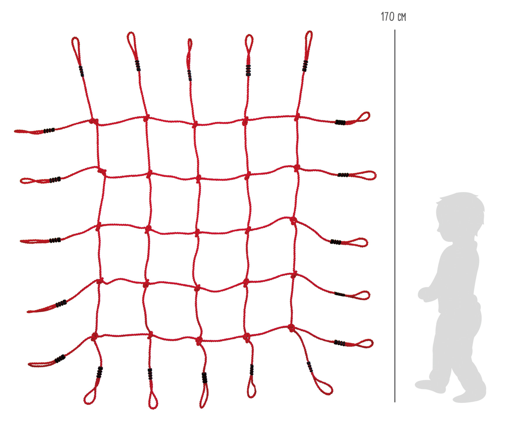 Rozměry: cca 170x170 cm Velikost ok: 25x25 cm Věk: 3+ Materiál: plast, lano Nosnost: 200 kg