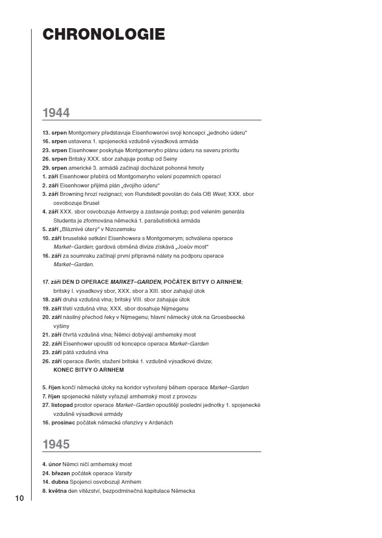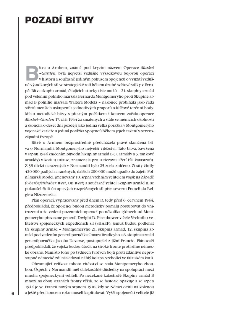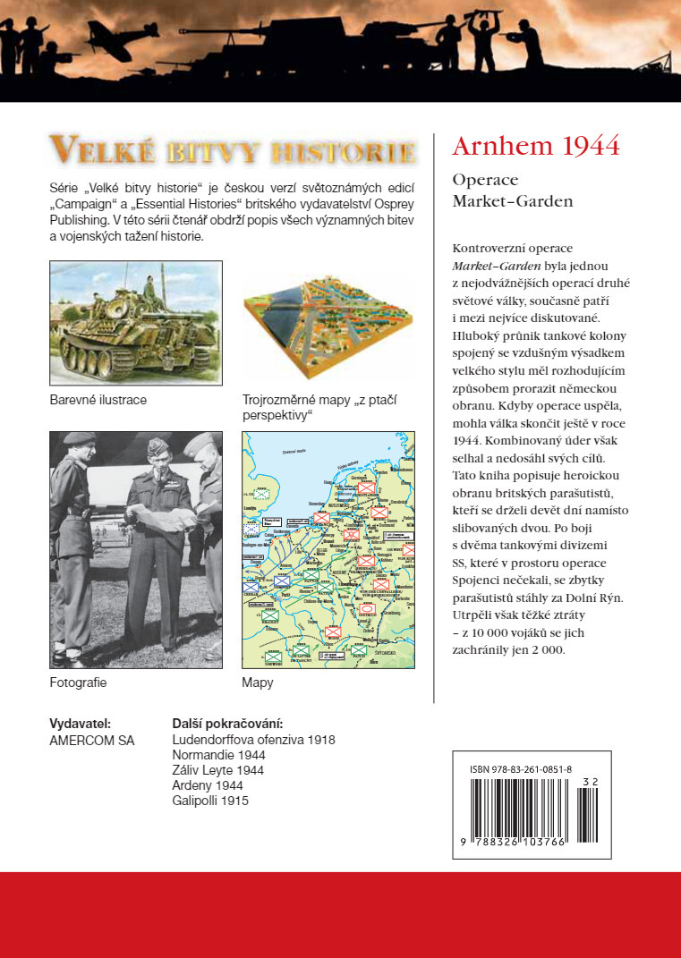 Kontroverzní operace Market Garden byla jednou z nejodvážnějších operací druhé světové války. Hluboký průnik tankové kolony spojený se vzdušným výsadkem velkého stylu měl rozhodujícím způsobem prorazit německou obranu. Kdyby operace uspěla, mohla válka skončit ještě v roce 1944. Kombinovaný úder však selhal a nedosáhl svých cílů. Tato kniha popisuje heroickou obranu britských parašutistů, kteří se drželi devět dní namísto slibovaných dvou. Po boji s dvěma tankovými divizemi SS, které v prostoru operace Spojenci nečekali, se zbytky parašutistů stáhly za Dolní Rýn. Utrpěli však těžké ztráty - z 10 000 vojáků se jich zachránily jen 2 000.
